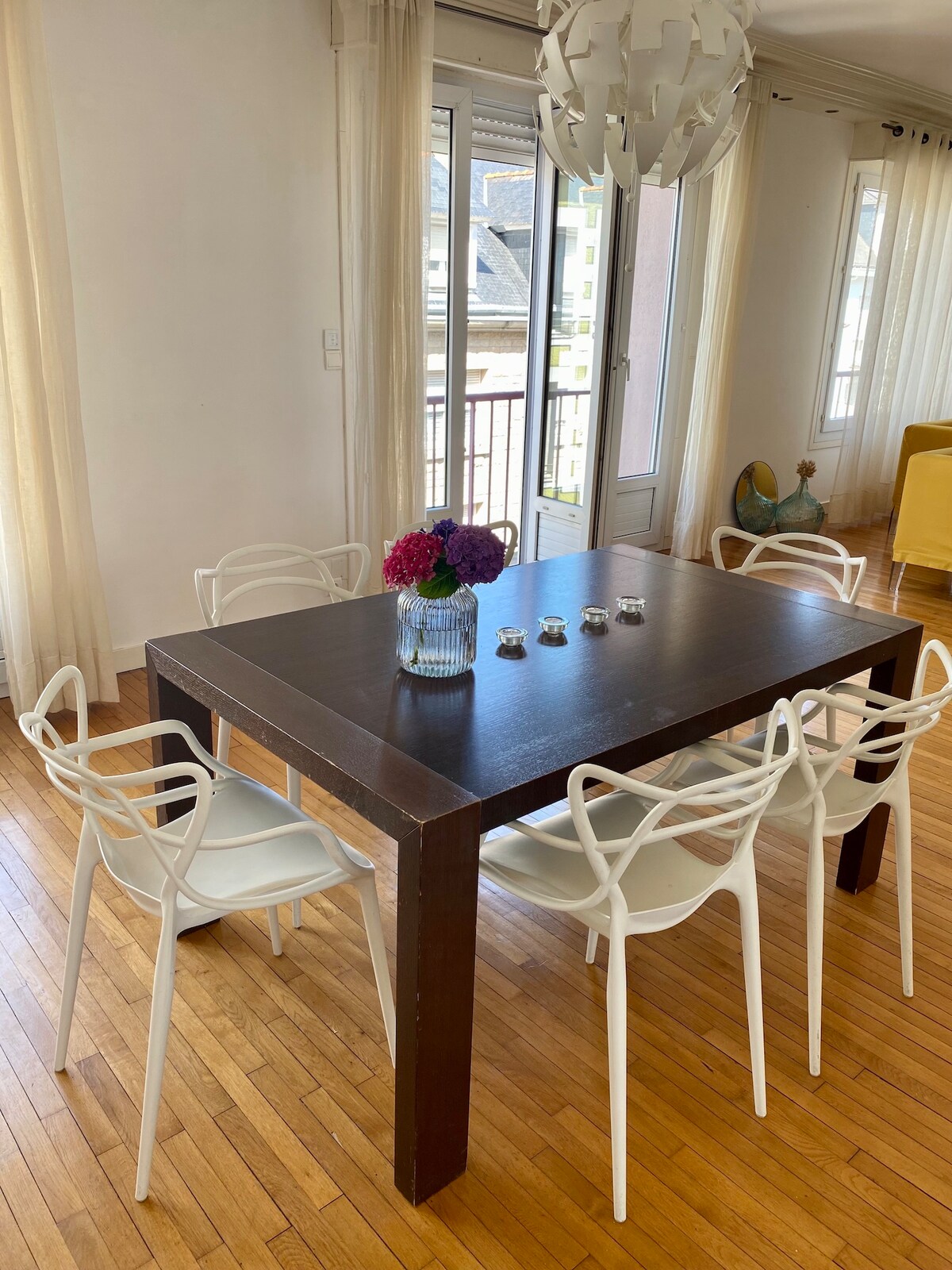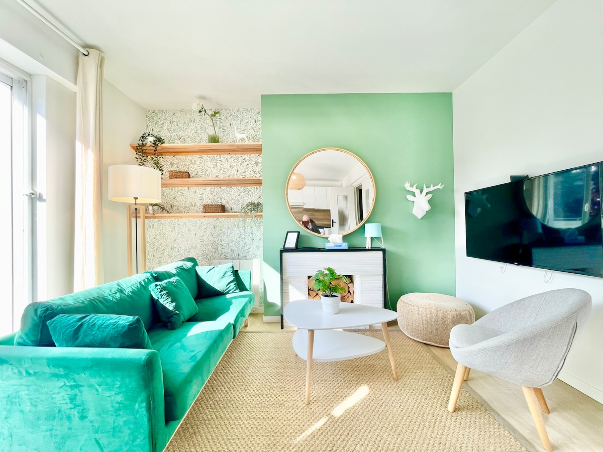 🧳 Socraigh isteach sa chocún geal seo i gcroílár Lorient, atá oiriúnach le haghaidh stopadh gairmiúil nó deireadh seachtaine suaimhneach. 🌿 Ag trasnú agus ag folcadh i bhfianaise, tá dhá bhalcóin san árasán le radhairc gan bhac ar an gcathair ar fad. 📺 Socair, compord, snáithín, Netflix, tá gach rud ann le haghaidh fanacht gan strus. 🎁 Mar bhónas: lascaine 20% ar gach cóireáil in institiúid Maison du Karité in Larmor - Plage, nuair a chuirfear d'áirithint Airbnb i láthair (le dul i gcomhairle le Planity).