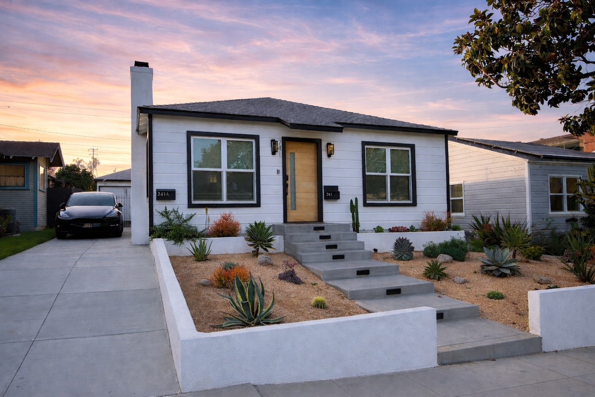 2 sheomra leapa nua - uasghrádaithe, 1 teach seomra folctha ina bhfuil seomra suí oscailte álainn agus leagan amach na cistine. Foirfe do theaghlach ar laethanta saoire, saoire ghearr do lánúineacha nó ag taisteal le haghaidh gnó. Níos lú ná cúig nóiméad sa charr ó aerfort Long Beach agus 405 saorbhealach. Táimid 18 míle ó LA agus 12 mhíle ó HB. Tá ár rialacha tí simplí, gan chóisirí, gan aon chaitheamh tobac de chineál ar bith laistigh agus gan aon pheataí. Gearrfar táille ghlantacháin bhreise má bhristear aon cheann de na rialacha. Cuir teachtaireacht le do thoil le haon cheisteanna atá agat.