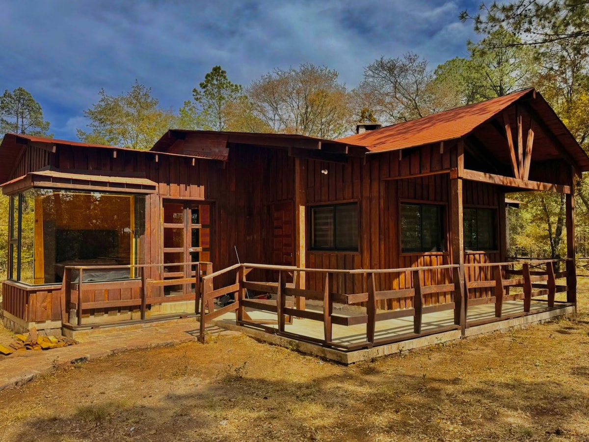 Cabaña álainn sa Sierra de Durango, 30 nóiméad ón bpríomhchathair. Teach 3 stór do 10 duine. Urlár na talún: Seomra leapa le 2 leaba dhúbailte agus seomra folctha iomlán; cistin - seomra bia; 1/2 seomra folctha lasmuigh in aice le póirse le hazador; an dara leibhéal: Seomra leapa le 2 leaba dhúbailte agus 1/2 seomra folctha; 3ú leibhéal: 2 leaba shingil le hardán radhairc álainn. Deis siúl idir cnoic. Tá solas leictreach, sorn, cuisneoir,cuisneoir, oigheann micreathonnach, oigheann micreathonnach, gríoscán leictreach, srl.