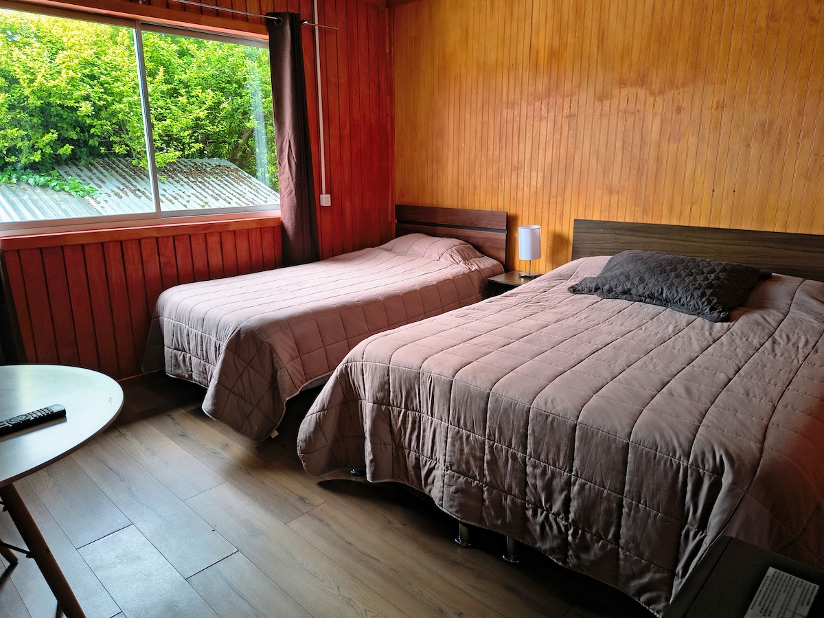 PUCON HOSTERIA & CAMPÁIL FORAOISE Is Hosteria tíre muid, atá suite sa cheantar máguaird de Pucón, timpeallaithe ag an dúlra agus radharc ar an mbolcán. Tá muid thart ar 12 nóiméad ar shiúl ó Downtown Pucon i gcarr. 1200mts ón mbóthar (bóthar salachair) Cuirimid seomraí ar fáil ina bhfuil seomra folctha príobháideach, bricfeasta saor in aisce, Wi - Fi, teilifíseán cábla, bealach isteach neamhspleách chuig gach seomra agus prócaí íocaíochta breise. Tinajas Íoctha Níl ár linn snámha ar fáil ach do mhíonna an tsamhraidh (Eanáir agus Feabhra).