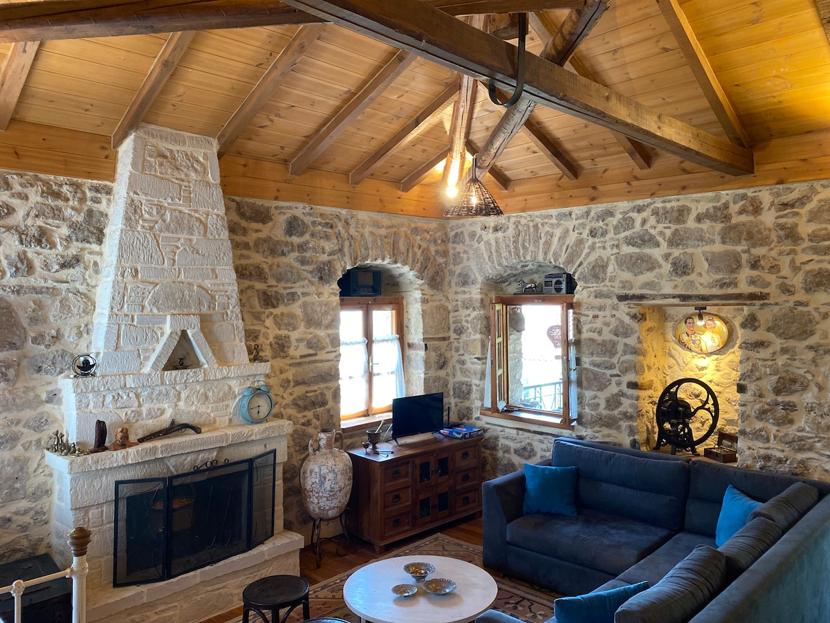 In Trikeri of South Pelion, teach atá athchóirithe go hiomlán, neamhspleách agus fairsing le spásanna lasmuigh, clós & balcóin le radhairc lánléargais ar gach pointe den léaslíne. Tá sé suite ar an gcainéal idir an mhurascaill Pagasitic - Evoic agus an Mhuir Aeigéach agus fágann sé ina dhiaidh, foraois Pelion, Sliabh na Centaurs. Is ceann scríbe álainn é Trikeri atá difriúil leis an gcuid eile de Pelion. Tá sé suite ag an mbarr is faide ó dheas de Pelion ag achar 81 km ó Volos ag airde de 300 méadar.