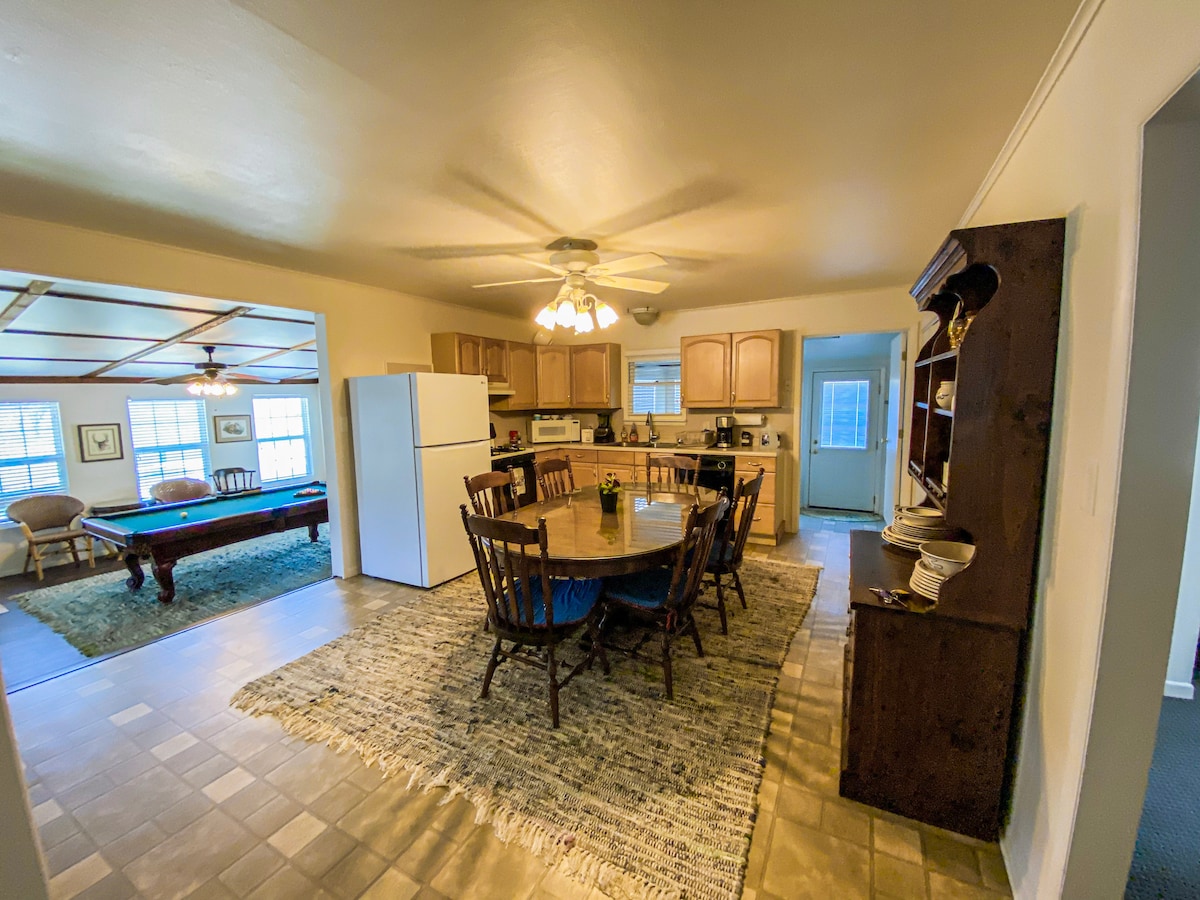 Téigh ar shaoire ón saol ag Wildwood Ranch! Rinneadh nuashonruithe le déanaí ar an teach feirme 3,600 troigh cearnach ina bhfuil cistin/seomra bia/seomra suí oscailte, atá foirfe do ghrúpaí. Cuirfidh na 4 sheomra leapa agus na 4.5 seomra folctha atá maisithe go hálainn fáilte romhat abhaile tar éis duit iniúchadh a dhéanamh ar an 160 acra d'áilleacht nádúrtha! Tum isteach sa linn snámha lonrach, tóg iasc sna locháin, téigh ag fánaíocht ar na cosáin nó lig do scíth ag an tine champa san oíche. Tar chun síth agus socracht a bhaint amach faoin tuath—b'fhéidir nach mbeidh fonn ort imeacht!