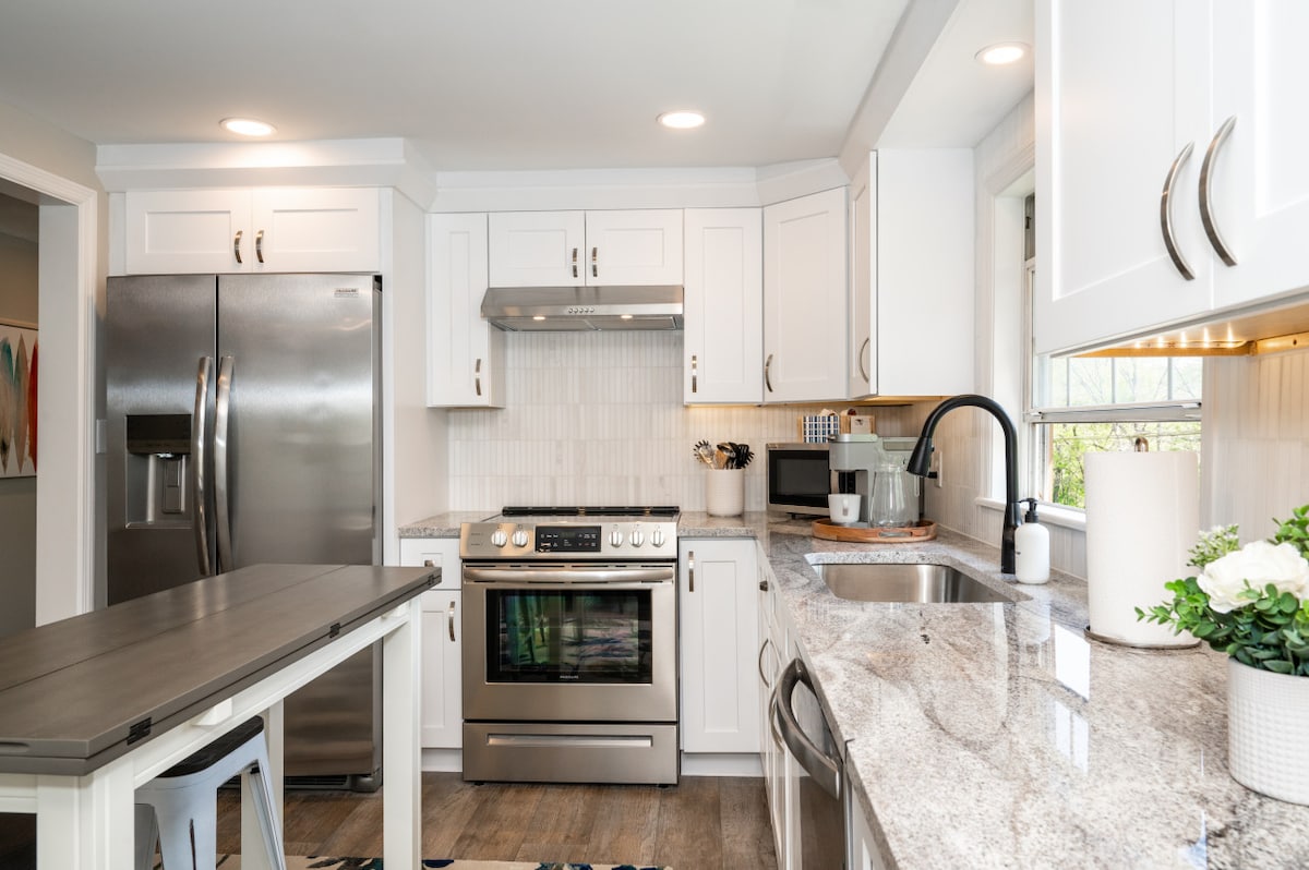 Tóg go héasca é ag an saoire ghearr uathúil shuaimhneach seo, áit a n - abounds scíthe. Táimid lonnaithe i gcontae Warren, clós súgartha Ohio. - athchóiriú iomlán agus iomlán in 2021 - cistin lánfheistithe - seomra leapa teolaí/seomra suí - seomra folctha fairsing le tobán coise crúbach chun súmáil isteach nó cithfholcadán, vanity, agus róbaí - cosáin siúil i gcoillte taobh thiar dár réadmhaoin, rochtain ar linn snámha (séasúrach), gar do bhialanna, siopaí, fíonghort, bailte stairiúla, an - ghar d'Oileán Kings, cosáin rothar, agus go leor eile