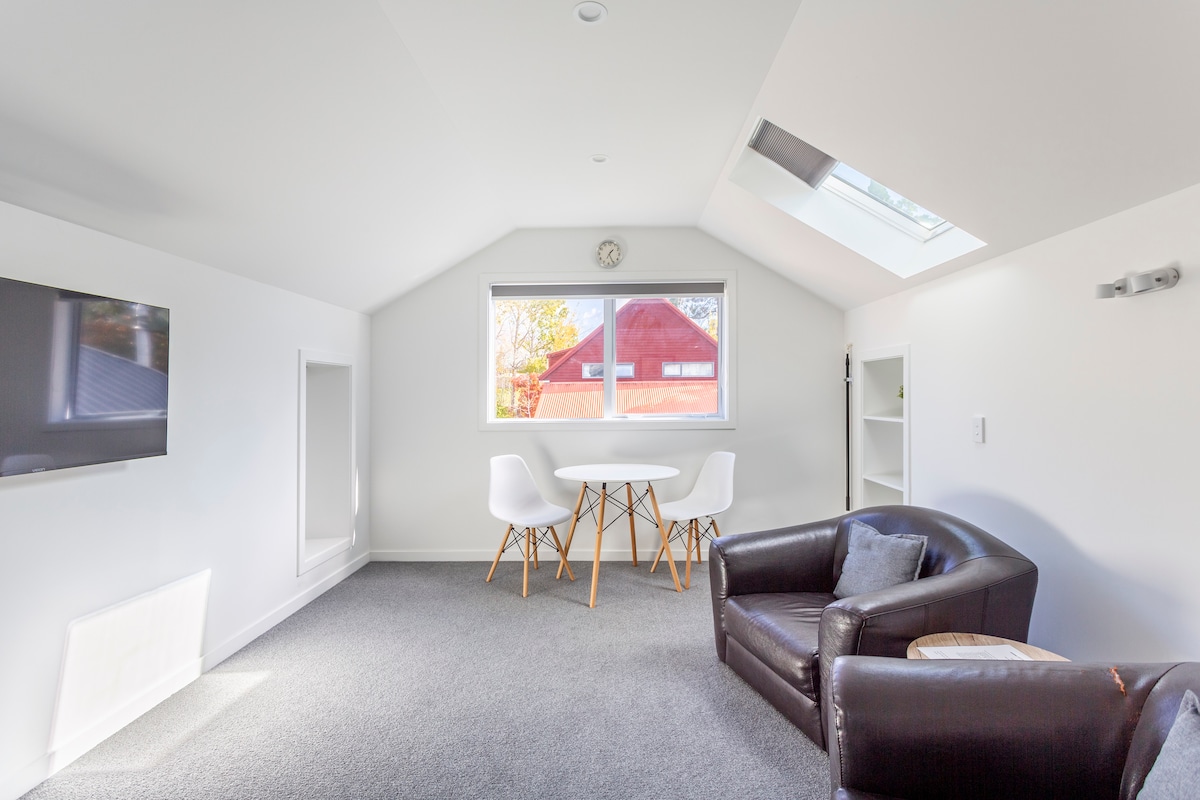 Tá ár seomra athchóirithe suite ar chúl ár gcuid thar an ngaráiste, le rochtain sheachtrach ar leith trí staighre. Táimid suite go foirfe chun taitneamh a bhaint as gach a bhfuil le tairiscint ag Cromwell. Níl ach siúlóid 10 nóiméad go dtí lár an bhaile agus an locha, níos gaire fós don ghalfchúrsa agus ar ndóigh áit iontach duit le fanacht má tá tú ag dul amach ar an gconair rothar lárnach otago. Tá cistinéad sa seomra ina bhfuil tae agus caife dea - mhéine agus gach rud a theastaíonn uait le haghaidh cúpla oíche shuaimhneach ar shiúl ón mbaile.