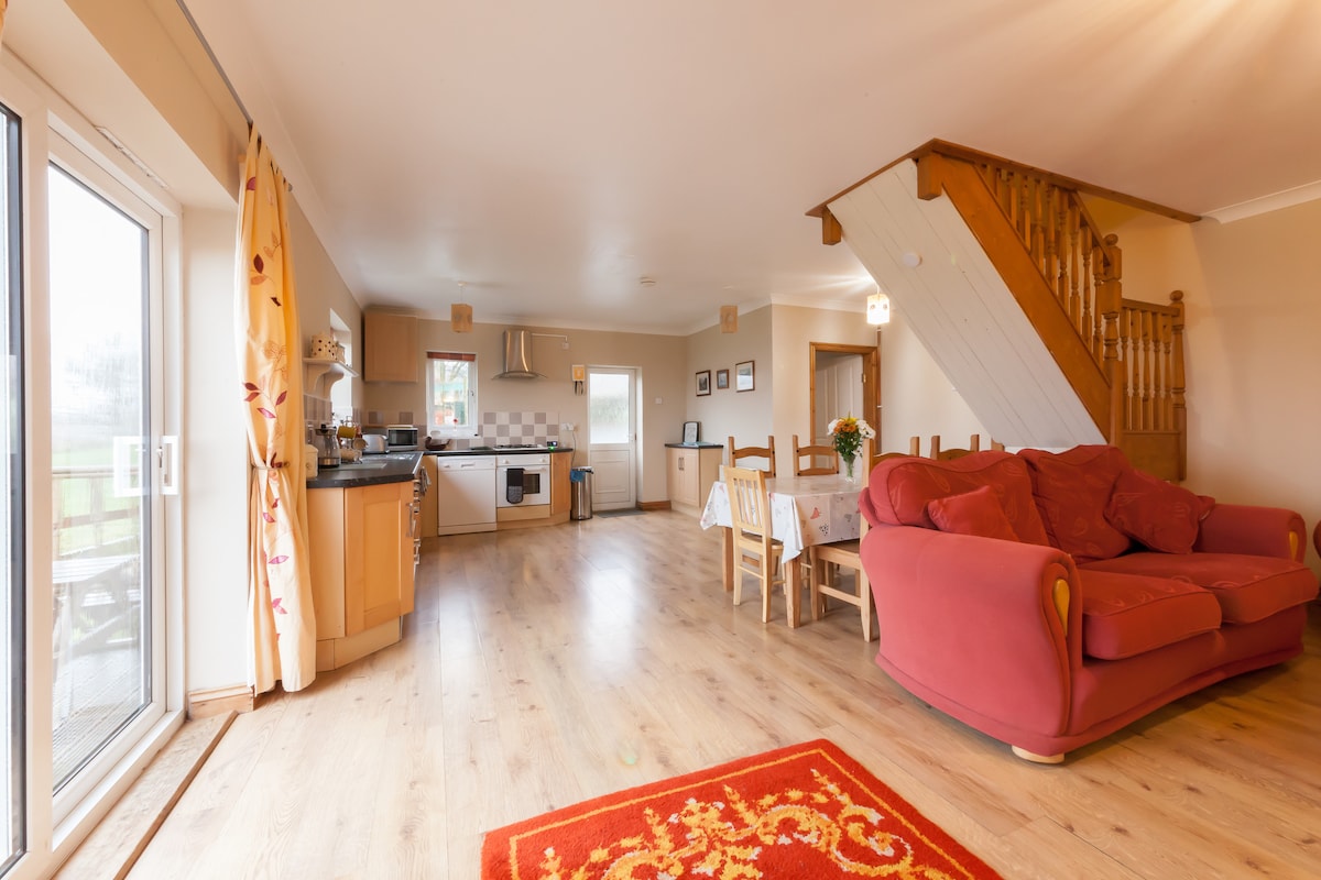 Ag breathnú amach ar ghairdíní áille, tá cistin/áit suí plean oscailte, seomra leapa & ensuite san árasán lánfheistithe seo. I measc na n - áiseanna tá reoiteoir cuisneora, miasniteoir, friochtán aeir, micreathonnán/gríoscán, hob, citeal, tóstaer, WIFI, teilifís chliste, Amazon Echo, soicéid luchtaithe USB, leaba thoilg, leaba dhúbailte, cithfholcadán báistí, téamh lárnach, bia príobháideach lasmuigh/limistéar gairdín. Pcáil ar feadh 2 charr. Is aguisín den phríomhtheach é an réadmhaoin ach tá bealach isteach príobháideach ar leith ann. Codlaíonn sé nó sí 4 dhuine fásta. Níl peataí ar bith ann.