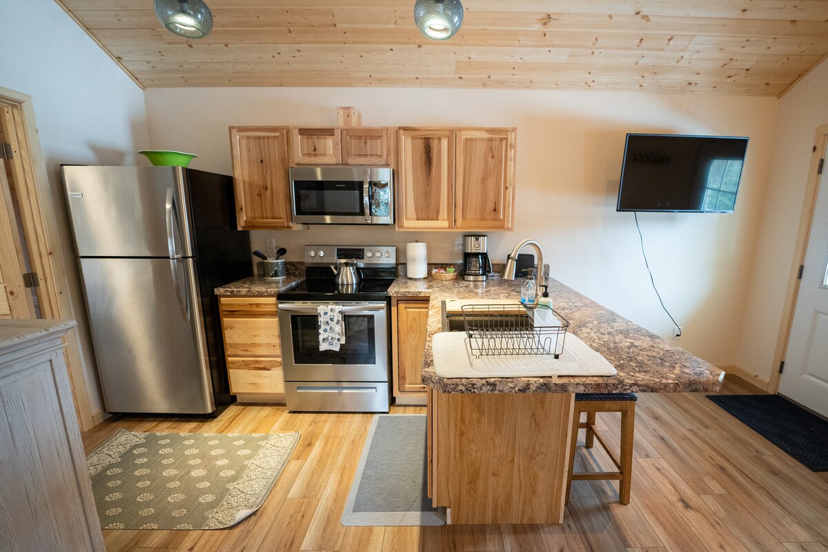Tá an cábán suite go háisiúil idir ionad sciála Alyeska agus cearnóg bhaile Girdwood (in aice le Girdwood Brewing Company!). Saoráidí tuisceanacha nua - aimseartha le dearadh cábáin logála - aird ar na sonraí beaga. Tearmann rómánsúil nó laethanta saoire teaghlaigh; codlaíonn sé 2 lánúin nó teaghlach de cheathrar go compordach (aíonna breise ar iarratas). An - oiriúnach d'eachtraí Alasca - sciáil sa gheimhreadh agus fánaíocht/oighearshruth/fámaireacht fiadhúlra i rith an tsamhraidh. Cuireann A - Chalet fáilte romhat agus tú ag iniúchadh áilleacht Alasca!