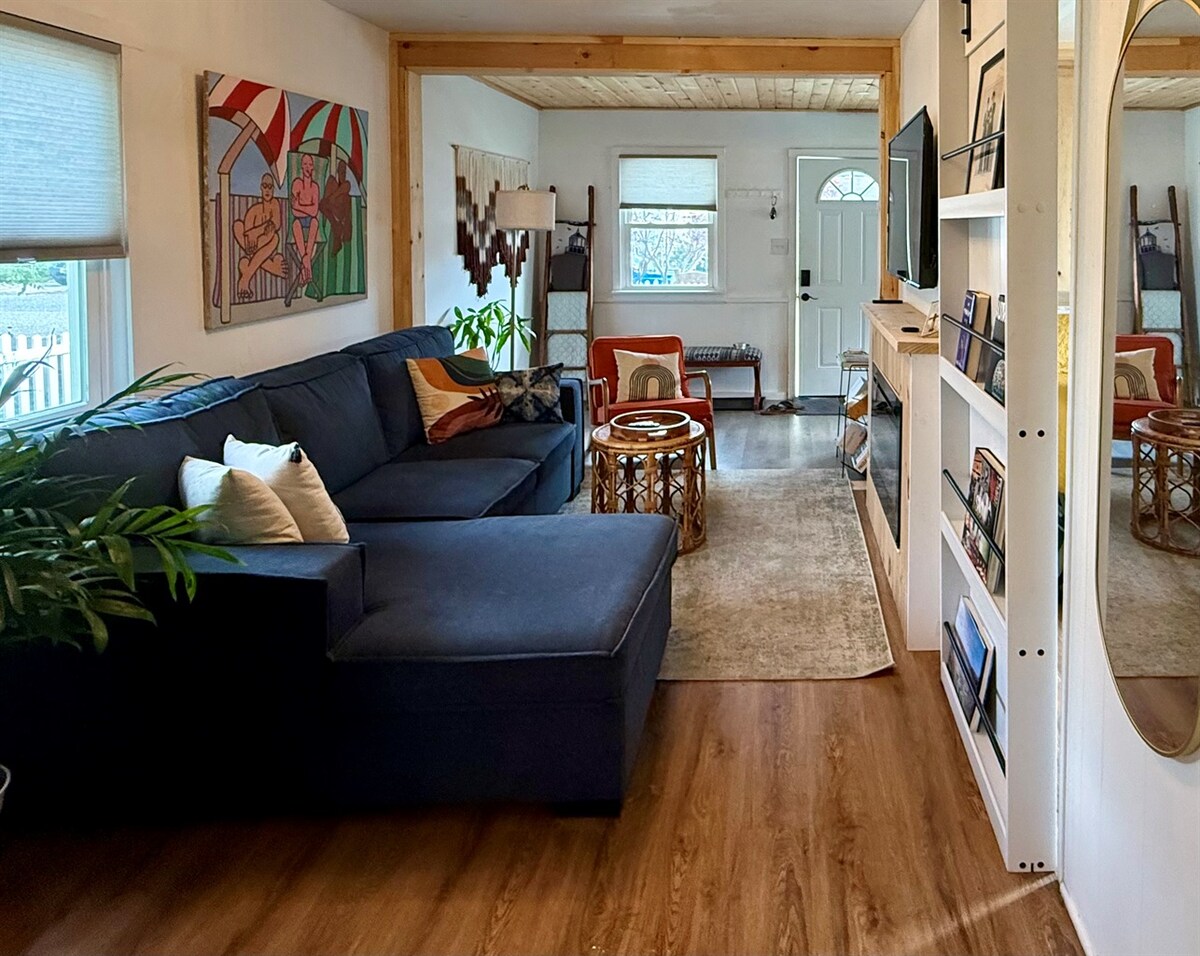 Fáilte go Bluefish Cottage! Cíosanna DÉ DOMHNAIGH GO DOMHNACH tar éis lár mhí an Mheithimh. Níl sa teachín gleoite seo in Key West - stíl ach 5 theach ón trá bhá, céimeanna ar shiúl ó roghanna iontacha gréine, cosáin siúil/rothaíochta, agus go leor eile. Gheobhaidh tú tearmann gairdín sa chúlchlós fálaithe le deic, gríoscán agus cithfholcadán lasmuigh. Bain sult as siúlóidí síochánta trá, cosáin rothar, bád farantóireachta Cape May, féilte titim, fíonlanna, bialanna den scoth, agus tránna Cape May nach bhfuil ach 12 nóiméad ar shiúl (pasanna trá san áireamh).