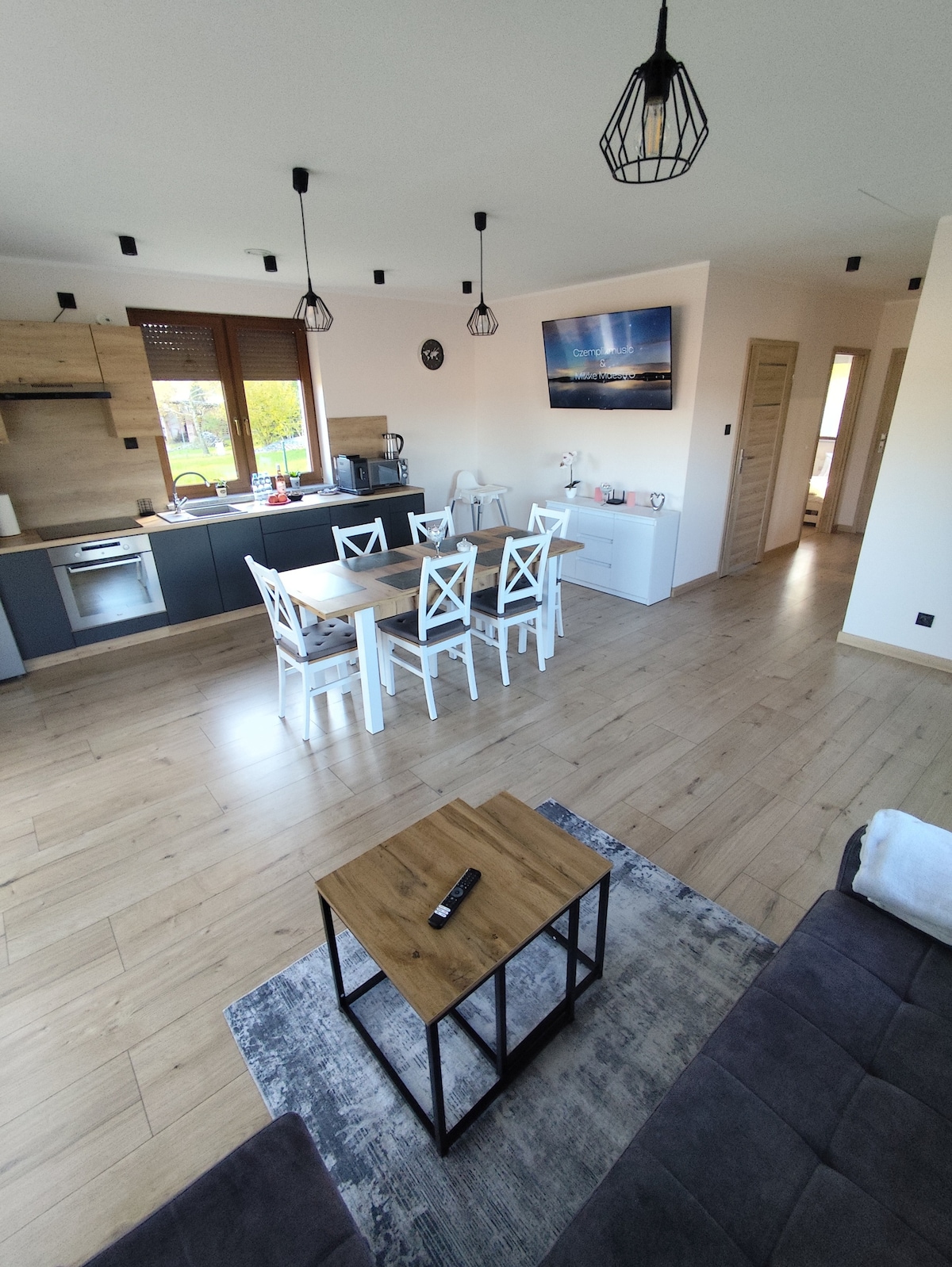 Teach Ollannach le - Cistin fheistithe - Salon le teilifís agus wi - fi -2 sheomra leapa le línéadach tí - Toileán le cithfholcadán (gan tuáillí) Tá siopa beag grósaera agus áit snámha in aice láimhe. Tá cosán rothar timpeall an locha. Gníomhaíochtaí áineasa eile: bád seaschéaslóireachta, cadhcanna - an fhéidearthacht ligean ar cíos uainn. Tá peataí ann freisin - Capaillíní. * le haghaidh tréimhsí fanachta níos giorra ná 3 oíche, gearraimid táille ghlantacháin 50zł