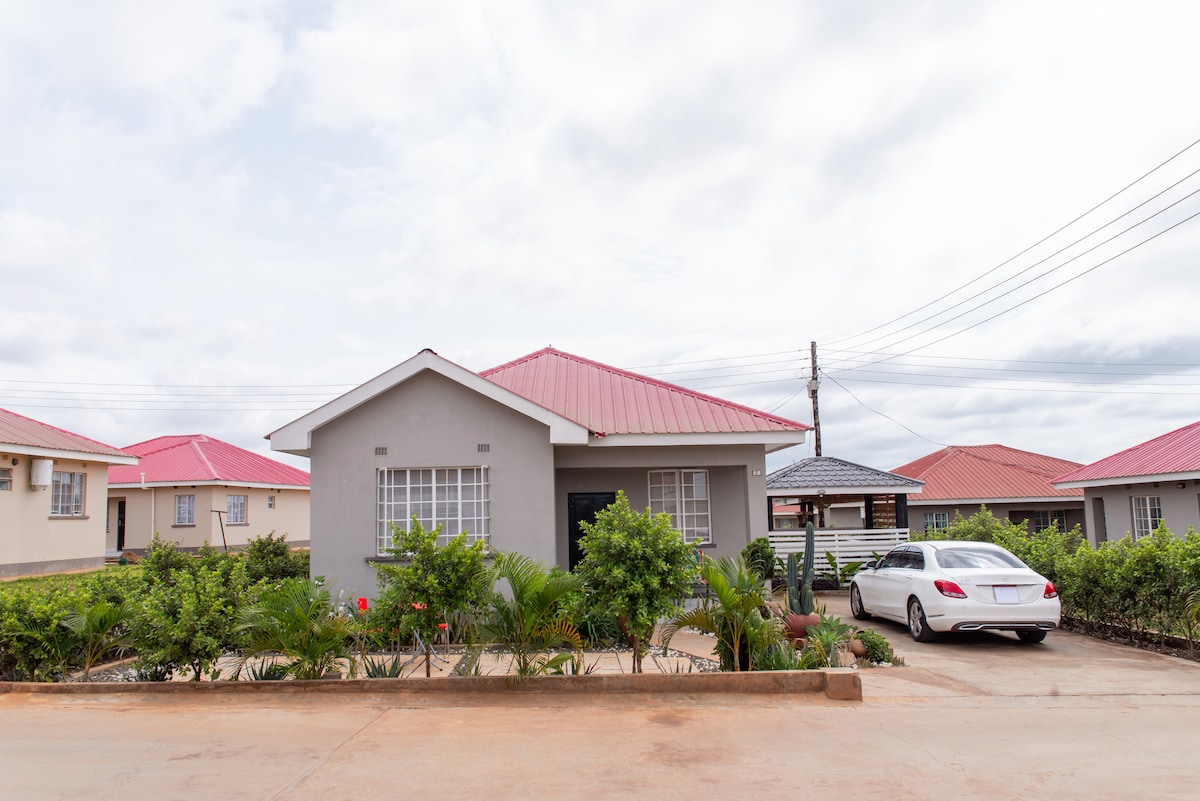 Árasán álainn dhá sheomra leapa atá ar fáil i gceantar ciúin sábháilte 15km ó Kamuzu Int'l Airport & 9km ó lár na cathrach. Suite i gcoimpléasc geataithe le slándáil 24/7, fál leictreach agus cúltaca cumhachta. Laistigh de 1km ó Ollmhargadh Carniwors a bhfuil tóir air. Feistithe le gach saoráid nua - aimseartha lena n - áirítear Wi - Fi. Oiriúnach do thréimhsí fanachta gearrthéarmacha agus fadtéarmacha araon. Fairsing le hacmhainn do suas le 5 aoi. Is féidir bailiú ón aerfort a shocrú ach é a iarraidh.