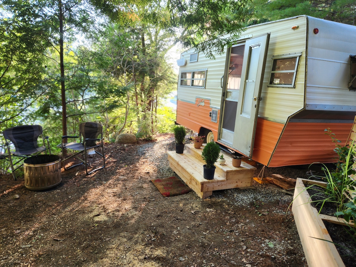 Fáilte go dtí ár veain champála gleoite Shasta sa bhliain 1973, Clementine, atá suite i gcaorán teolaí ar Loch Big Mushamush. Lonnaithe i suíomh tuaithe díreach 15 nóiméad ó Bhá Mahone agus 25 nóiméad go Lunenburg, is í Clementine an áit fhoirfe chun do hata a chrochadh idir turais lae South Shore, nó, is féidir léi feidhmiú mar cheann scríbe simplí tuaithe ann féin chun é a athshocrú ó ghnóthas agus ó ghnóthas na cathrach. Tá simplíocht na gcoillte, tinte campála, oícheanta réaltaí, cuaráin bhó, uibheacha úra feirme, brístí teo agus tumthaí locha ag fanacht leat!
