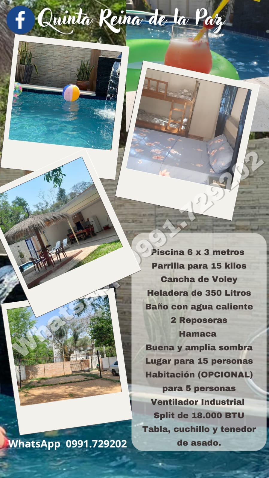 Quinta Taruma Roga. Suite i gcathair San Bernardino, nóiméid ó lár an bhaile, tá 3 dhóire tír - raoin ann ina bhfuil nádúr uathúil, príobháideacht, áiteanna siamsaíochta do leanaí amhail linn snámha, cúirteanna sacair, cúirteanna eitpheile, feistithe go hiomlán le tábla linn snámha agus ping pong, oiriúnach do pheataí freisin. Tugadh cuireadh dóibh gan lóistín, bíodh costas breise agat