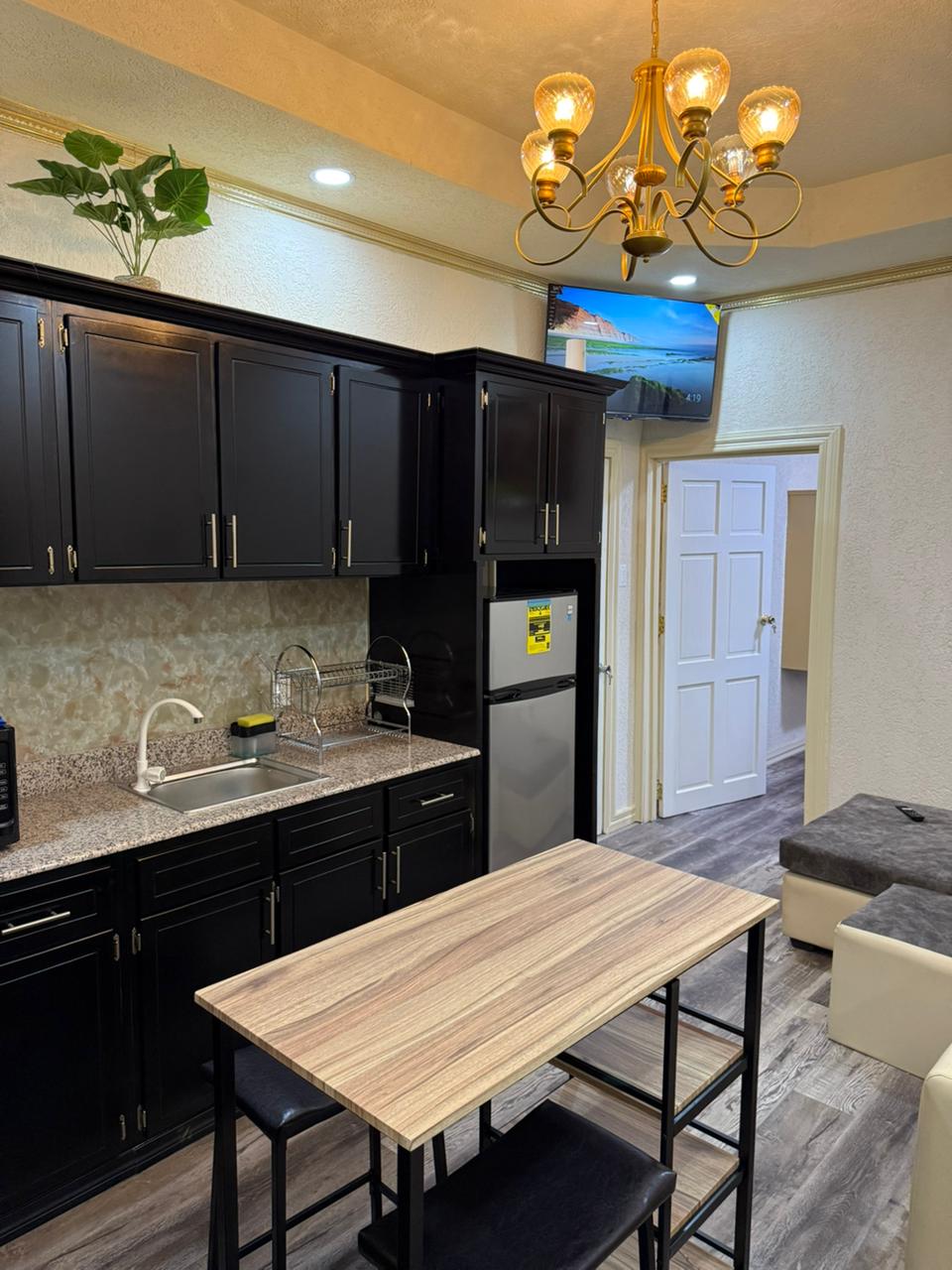 With its modern design and prime location, our apartment is perfect for a single person traveling on business or couples looking for a comfortable and convenient home during their stay. The apartment features a bedroom with queen-size beds, a cozy living room has a comfortable sofa, a small eating area and a flat-screen TV, The apartment also has a fully equipped kitchenette , High-speed Wi-Fi is provided for your convenience, along with air conditioning and stand-by power