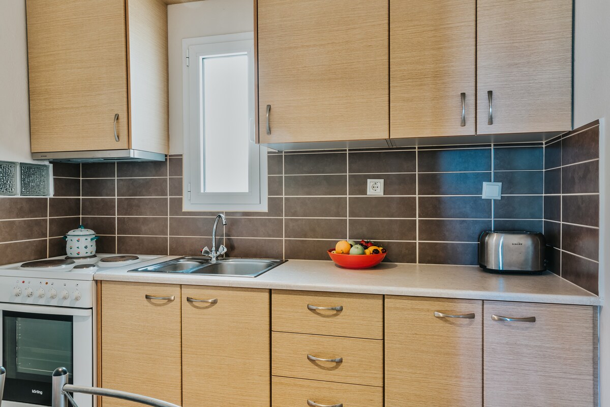 Áit ina dtógfaidh tú anáil, ina ndéanfaidh tú síocháin a ionanálú agus ina ndéanfaidh tú sonas a easanálú! Stíl nua - aimseartha Boho Villa 100m ón Trá, atá suite i sráidbhaile álainn Lygaria. Athchóiríodh é go hiomlán i mí na Bealtaine 2021. Villa aon stóir ina bhfuil dhá sheomra leapa, seomra suí agus cistin, áit mhór ardáin ina bhfuil gríoscán beárbaiciú, cistin samhraidh, áit itheacháin, áit tholg, linn snámha agus áit LUÍ gréine agus páirceáil dhúnta do charr amháin. Suíomh sa phictiúrtha agus cáiliúil i measc shráidbhaile na nGréagach in Ligaria.