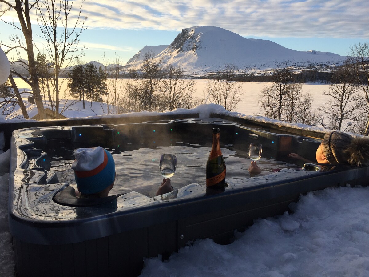Cábán iontach le radharc álainn ag Lykkja, Hemsedal