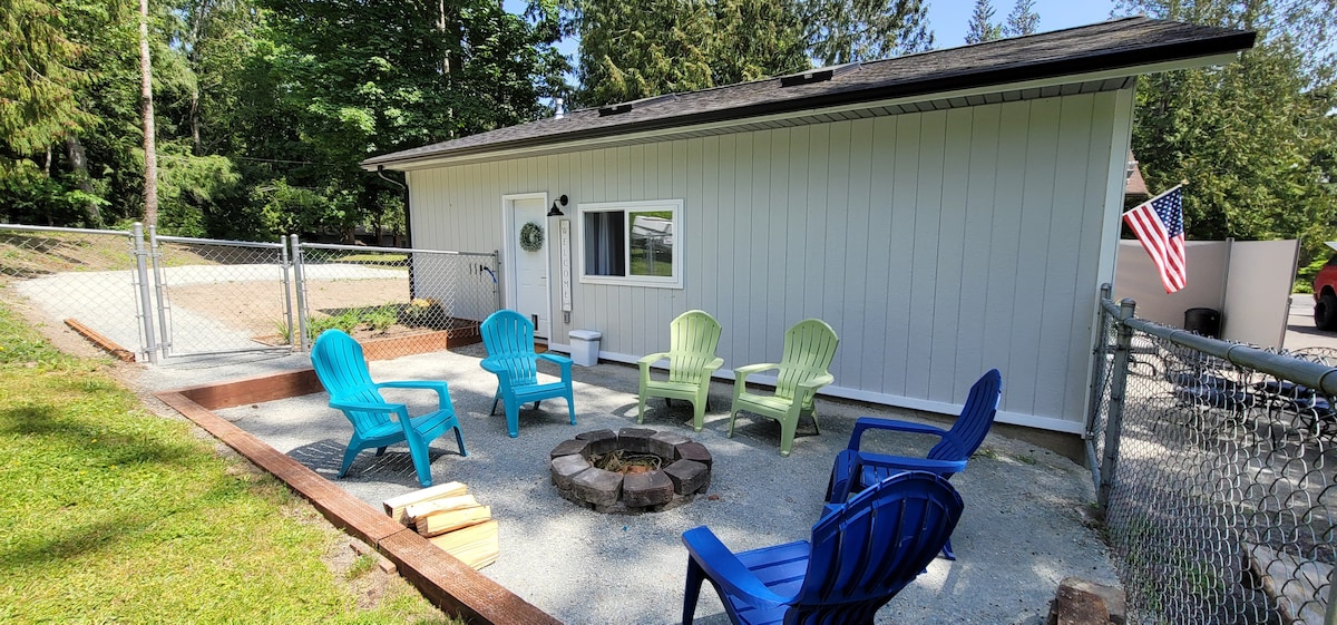 Is tearmann síochánta, príobháideach, madra agus oiriúnach do pháistí é Teachín an Ghuail atá foirfe do lánúineacha nó do theaghlaigh bheaga atá ag lorg rochtain éasca ar na Cascades Thuaidh! Tá an teachín suite ar bhóthar ciúin nach bhfuil ach 7 nóiméad soir ó Sedro Woolley agus 15 nóiméad ó I -5. Codlaíonn sé go compordach 1 -6. Taobh istigh tá cistin iomlán, idirlíon ardluais, 2 Teilifíseán Cliste le haghaidh sruthú, agus níochán. Taobh amuigh tá cabhsa ar leith, paitió príobháideach, agus clós súgartha fálaithe le poll dóiteáin. Táimid thart ar 1 uair an chloig ón NCNP.
