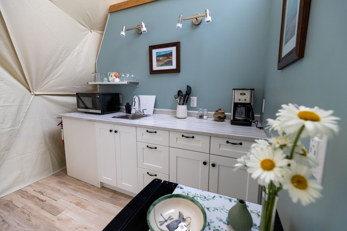 Suite ar thaobh cnoic ag breathnú amach ar bhá stairiúil Naomh Ann, tá cábán an tSeanchonair suite go háisiúil díreach 5.5km ó thús chonair Cabot agus an Choláiste Ghaelaigh. Áit iontach chun d'eachtraí Cabot Trail a thosú nó a chríochnú! Tá an cábán deartha chun mothú chomh hoscailte agus chomh haerach agus is féidir le haghaidh spás beag. Tá leaba bhanríona sa seomra leapa agus tá leaba shingil sa lochta. Tá déantóir caife, tóstaer, mionchuisneoir agus micreathonnán sa chistinéad. Níl na saoráidí go léir a theastaíonn ach 15 nóiméad ar shiúl in Baddeck.