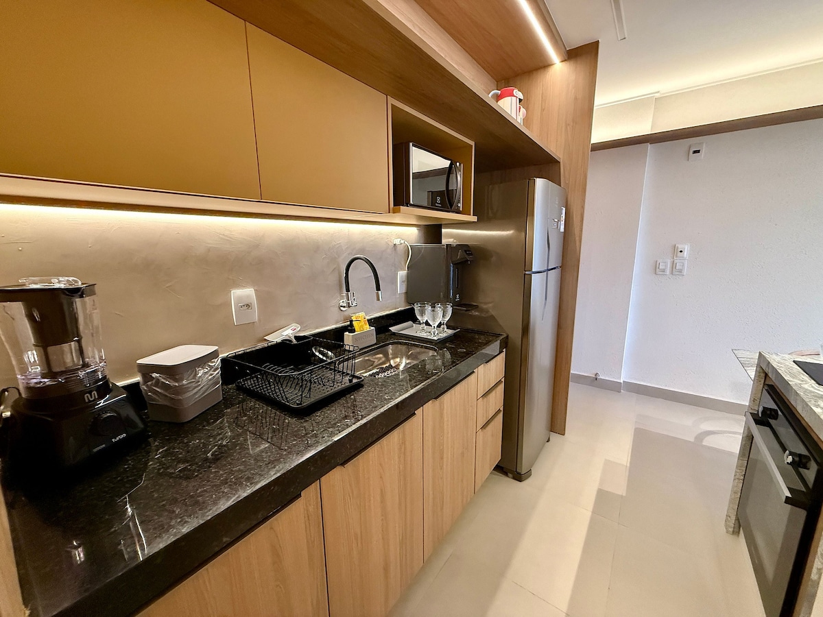 Fáilte go Mandi – Compord agus Stíl 390m ó Pajuçara Beach! Bain sult as fanacht nua - aimseartha teolaí i gcroílár Pajuçara, ceann de na tránna is gleoite in Maceió! Lonnaithe ar an 8ú hurlár, dearadh ár seomra leapa agus ár seomra suí chun praiticiúlacht agus folláine a thairiscint, le radharc uirbeach agus timpeallacht aerchóirithe.