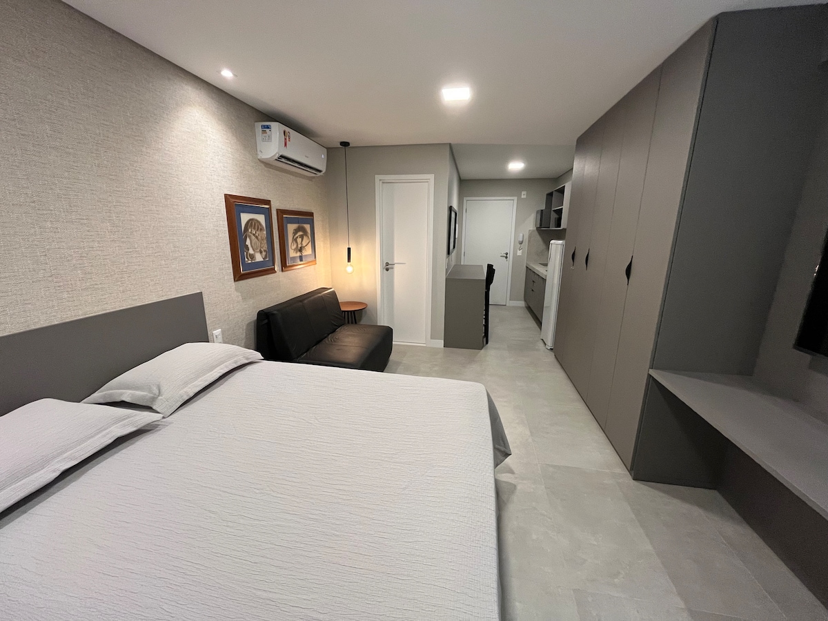 Ligim árasán álainn (stiúideo) ar cíos le troscán den scoth, le tolg, tábla caife, Teilifís Chliste, teilifís idirlín agus cábla, leaba le painéal, vardrús le vardrús pleanáilte, cuisneoir, sorn, micreathonnán, gach cineál fearas agus uirlisí cistine. aerchóiriú, limistéar seirbhíse le meaisín níocháin, iarann agus clár iarnála,seomra folctha i bpoirceall, cithfholcadán te. Foirgneamh le limistéar fóillíochta ar an díon, le linn snámha, agus radharc iontach ar an gcathair, slándáil 24 uair an chloig, 1 láthair sa gharáiste, Suíomh den scoth 500 méadar ó imeall an uisce, tá an stiúideo in aice leis an ollmhargadh Unicompra, ionad Leighis Harmony, agus an t - ollmhargadh G Barbosa, atá os comhair na bialainne Divina Gula, gar don chógaslann, bácús, BBQ, cearnóg Vera Arruda, agus na bialanna is fearr sa Chathair...