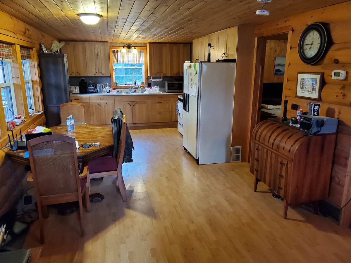 Teachín álainn ceithre shéasúr atá neadaithe ar shiúl ar cheithre acra phríobháideacha coillteach ar an mbealach uisce ciúin abhann Theas a théann go dtí loch Foraoise. Iontach le haghaidh curachóireachta agus cadhcanna, agus iascaireacht den scoth. Paitió mór tosaigh chun suí amach agus do scíth a ligean nó fanacht istigh le teallach álainn dóite adhmaid cloiche. Trí sheomra leapa agus coincheap oscailte compordach spás maireachtála dearadh nua-aimseartha leis na háiseanna.ATV agus cosáin snowmobile in aice láimhe.Níl ach 35 nóiméad. ó thuaidh ó Mhuscóca.