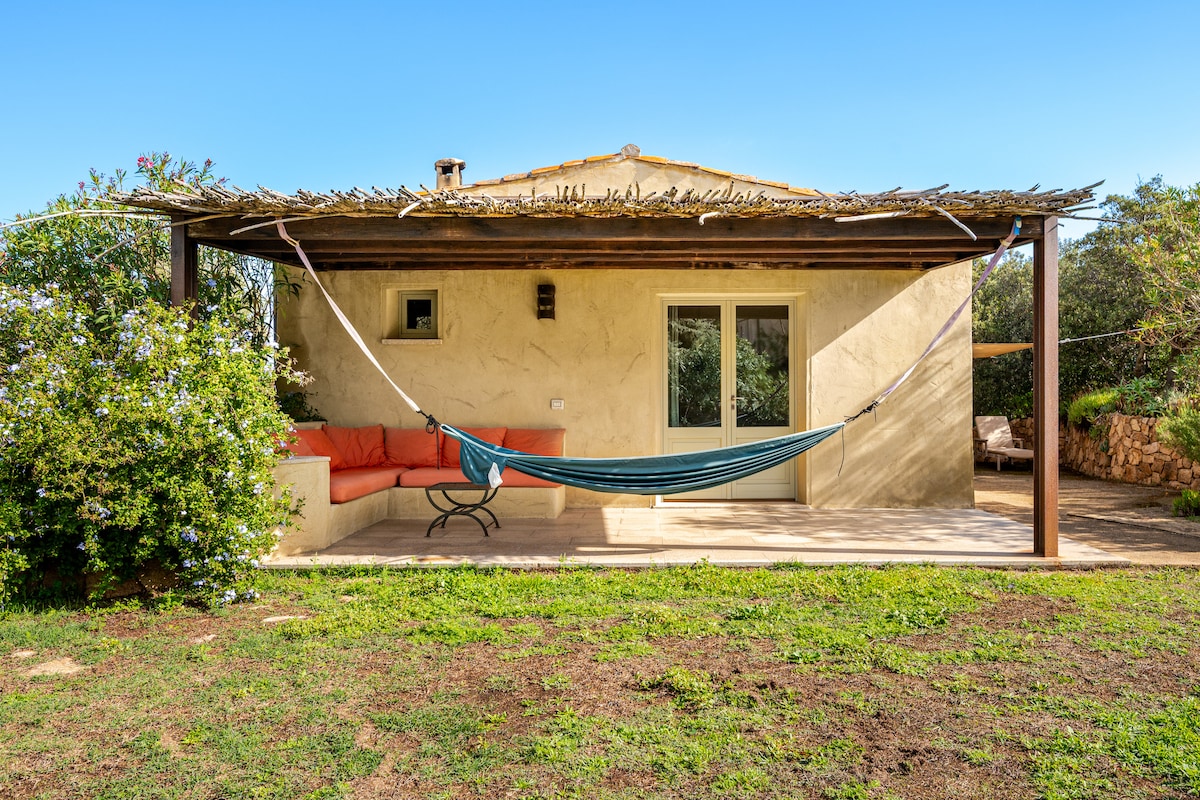 Teach tuaithe, "Stazzu gallurese" ársa agus tipiciúil, cuid d'eastát lánléargais le radharc iontach ar oileáin Oileánra Maddalena. Tá an teach suite os comhair foirgneamh níos mó ar ár réadmhaoin agus tá sé tumtha i scrobarnach na Meánmhara, timpeallaithe ag carraigeacha eibhir molta agus crainn olóige céadta bliain d'aois. Táille madra € 30 in aghaidh an fhanachta (ceadaítear 2 mhadra ar a mhéad). Cin IT090063C2000S3223
