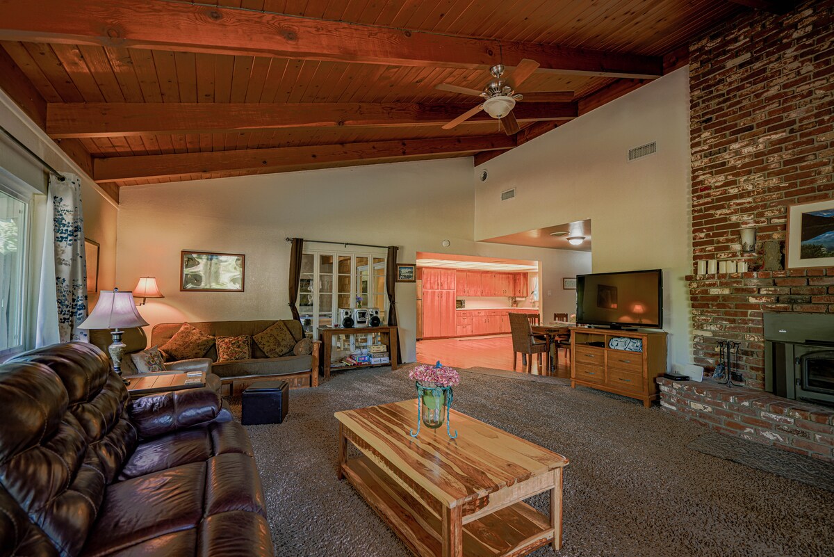 Músclaigh agus radhairc áille ar Sierra Nevada 🏔️, ól do chuid caife ar maidin agus tú ag breathnú amach ar fhíonghort príobháideach, agus críochnaigh do thráthnóna thart ar an bpoll tine faoi spéir lán de réaltaí ✨. Is tearmann sléibhte fairsing, suaimhneach é Sierra Ranch atá deartha do theaghlaigh agus do ghrúpaí atá ag iarraidh a scíth a ligean — agus iad fós gar don eachtraíocht. Suite díreach cúpla nóiméad ó Mariposa gleoite agus turas álainn go Páirc Náisiúnta Yosemite, tá compord, spás agus radhairc dhochoimhdeacha ó bheagnach gach seomra sa teach 3,100 troigh chearnach seo.