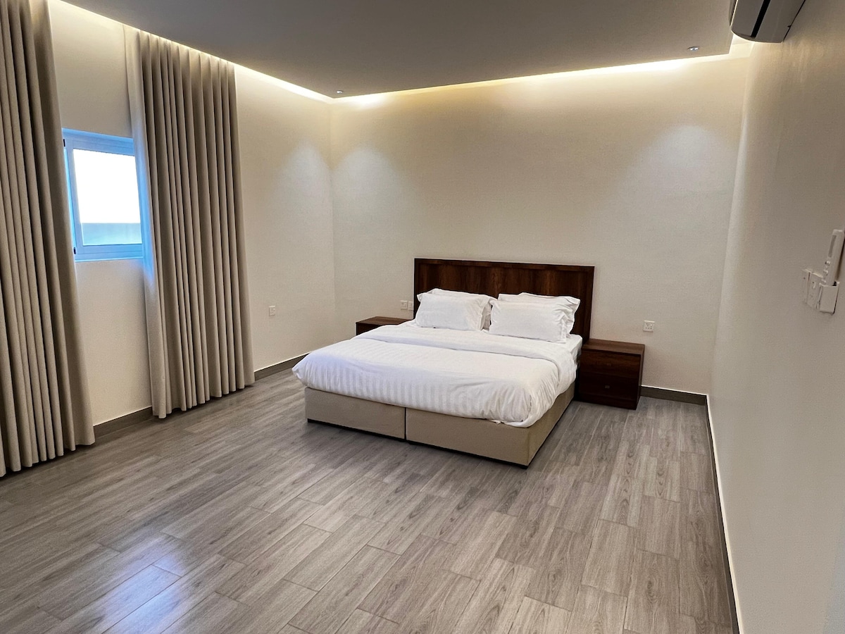 This furnished hotel apartment is located in the Al-Areedh neighborhood in Medina, offering a central location with easy access to all essential services. The apartment consists of two bedrooms, a spacious living room, a fully equipped kitchen, and a bathroom. The apartment is very spacious, providing comfort and privacy for guests. Right in front of the apartment is a walking path, perfect for enjoying a stroll, with numerous restaurants, groceries, and cafes nearby.