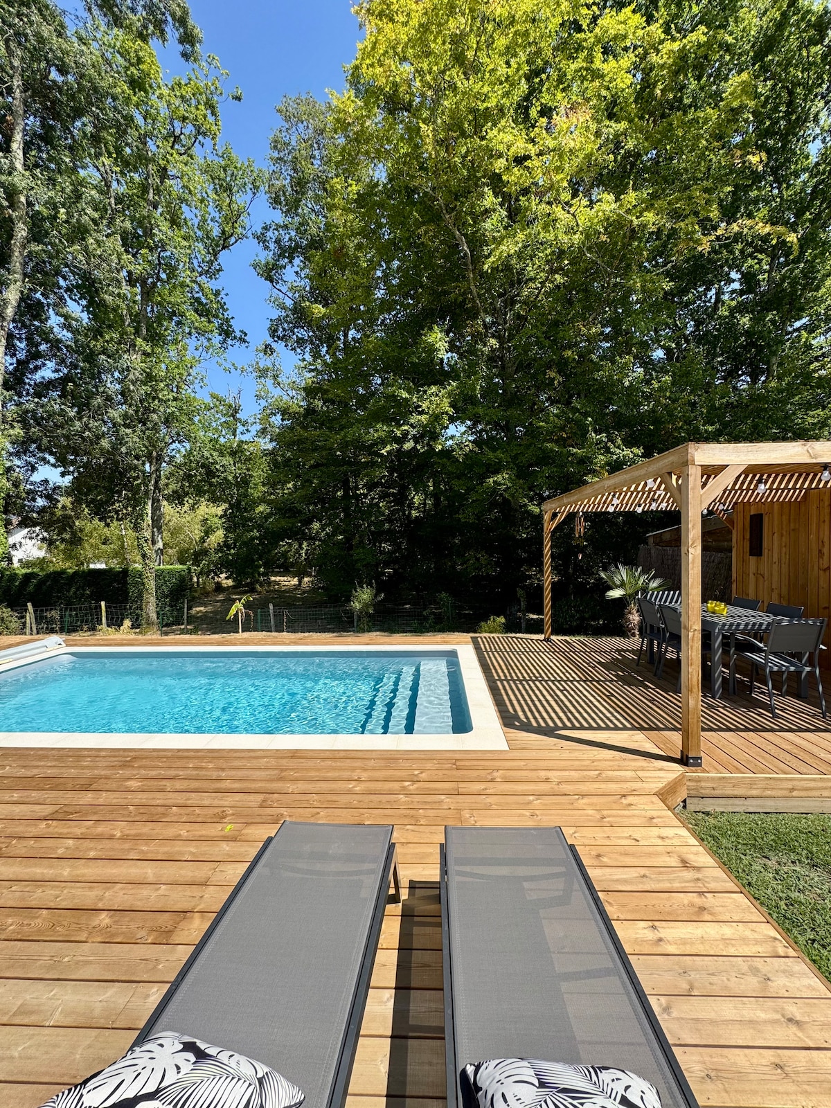 Teachín gleoite La Longère Bordeaux ag a bhfuil linn snámha