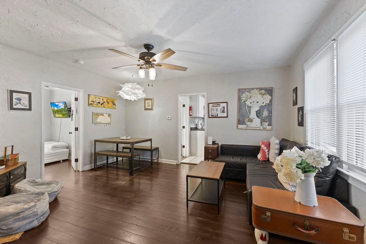 Neadaithe i lár stairiúil Pendleton, IN, cuireann an stiúideo seo atá athmhúnlaithe go hiomlán an meascán foirfe de chompord agus stíl ar fáil. Bain sult as cistin i stíl cócaire, seomra folctha sómasach ina bhfuil cithfholcadán báistí agus teas radanta, agus teallach leictreach. Lig do scíth sa phaitió príobháideach fálaithe le tobán te 4 dhuine. I measc na ngnéithe tá leaba bhanríona, tolg in - chomhshóite, cuirtíní dúghorma, síleálacha boghtaí, agus gan aon chéimeanna maidir le hinrochtaineacht. Siúl chuig siopaí, bialanna agus beáir áitiúla, le páirceáil díreach céimeanna ón doras.