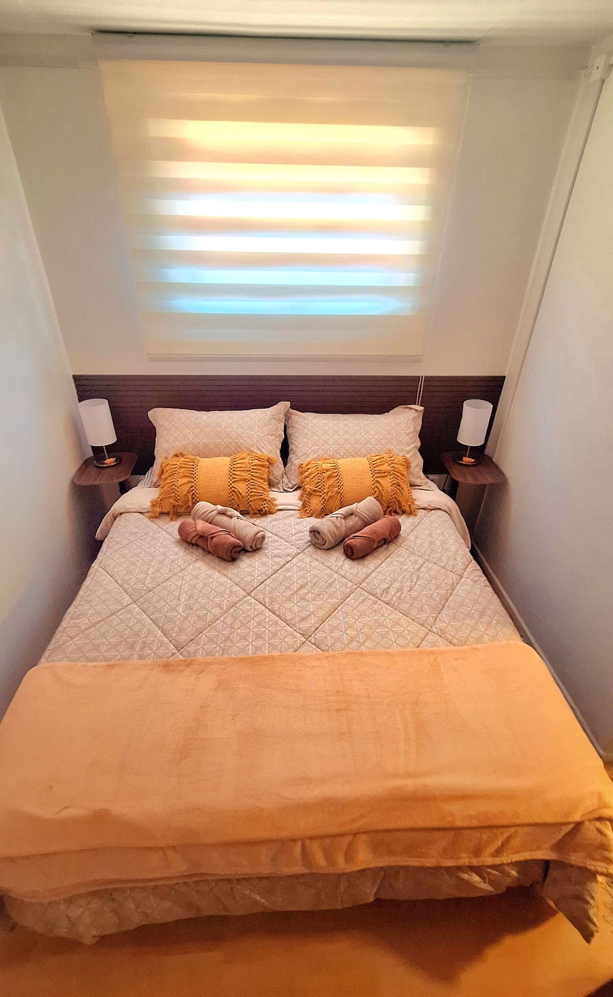 This accommodation is a fully self contained, self catering, mini cabin , consisting bedroom ,bathroom and galley kitchen ,with access to garden area and common outdoor seating area . We are located a 3 minute walk from the bus terminal, and 5 min walk from downtown. Facilities include free W-FI ,smart tv with cable channels and tea & coffee making facilities etc, we also offer a paid luggage custody service, so you can store bags while you trek! price on request.