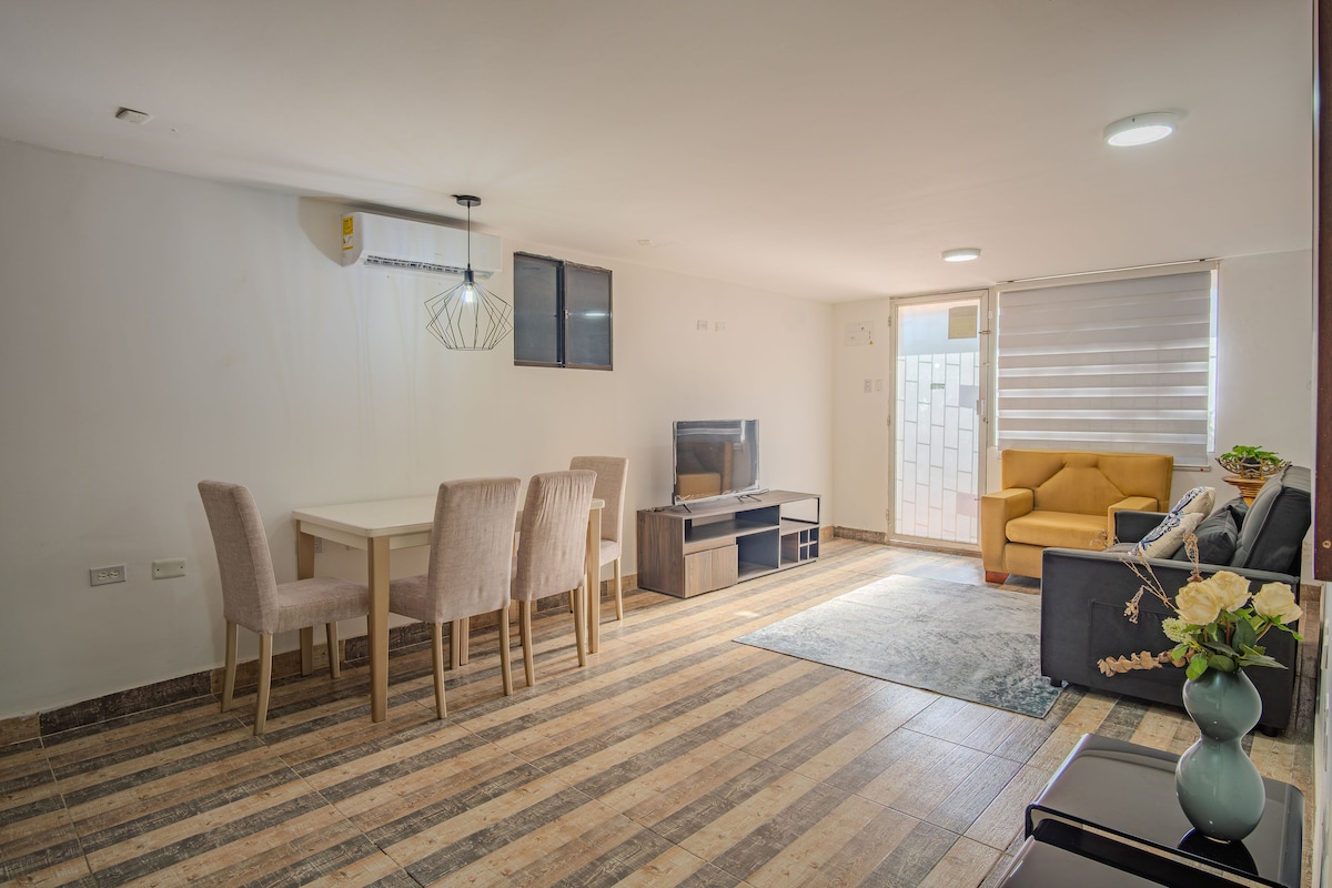 Fáilte chuig do thearmann teolaí in Santa Marta 🌴 Bain sult as lochta te, compordach agus feidhmiúil nach bhfuil ach siúlóid 5 nóiméad ón lár stairiúil. Tá an spás foirfe chun do scíth a ligean: leaba dhúbailte chompordach, cistin lánfheistithe, áit itheacháin, seomra folctha príobháideach, aerchóiriú agus Wi - Fi tapa ionas gur féidir leat oibriú nó ceangal a dhéanamh aon uair is gá duit. Cibé acu an bhfuil tú anseo chun iniúchadh a dhéanamh, scíth a ligean, nó oibriú ó chian, beidh gach rud a theastaíonn uait agat. Ba bhreá linn tú a óstáil - braith díreach sa bhaile in Santa Marta. Déan áirithint anois! ✨