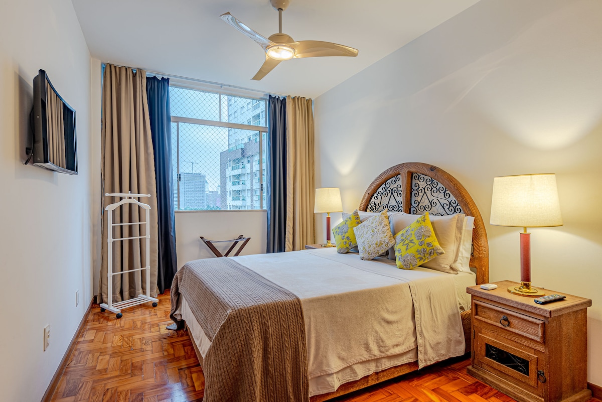 Tá doirseoir 24 uair an chloig san árasán galánta 50m2 seo atá suite ag Bela Vista. 2 sheomra leapa (gan ach 1 le AC, agus leaba bhanríona, tá an dara ceann beag go leor agus is féidir é a úsáid mar oifig, ag feistiú leaba thoilg dhá mhéid) agus 1 seomra folctha. Le radhairc iontacha ó gach fuinneog, is áit iontach í le bheith ag obair agus le do scíth a ligean. Is áit iontach é an scairdfheadán príobháideach ag an mbalcóin chun taitneamh a bhaint as radhairc na cathrach. Páirceáil - cábla/teilifís chliste, cuisneoir le déantóir oighir, oigheann, níochán & triomadóir, barr cócaireachta, micreathonnán, miasniteoir agus idirlíon an - tapa.