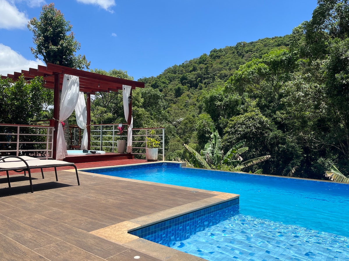 Tearmann taobh istigh d'Fhoraois an Atlantaigh, 30 nóiméad ó phríomhchathair SP, in Serra da Cantareira. Bain sult as an áit ghalánta rómánsúil seo i lár an dúlra. Tar ar do shuaimhneas ar ár ndeic le jacuzzi agus radharc iontach ar an bhforaois. D'fhéadfadh roinnt speiceas ainmhithe agus éan cuairt a thabhairt ort. Bain sult as teallach, fíon agus an - ghlas. Bíodh eispéireas iontach agat ar thumadh céadfach agus fuaime leis an dúlra! TÁBHACHTACH: Ní dhéanaimid áirithintí trí theachtaireacht a chur chuig an aip! Bí ar do shuaimhneas maidir le camscéimeanna