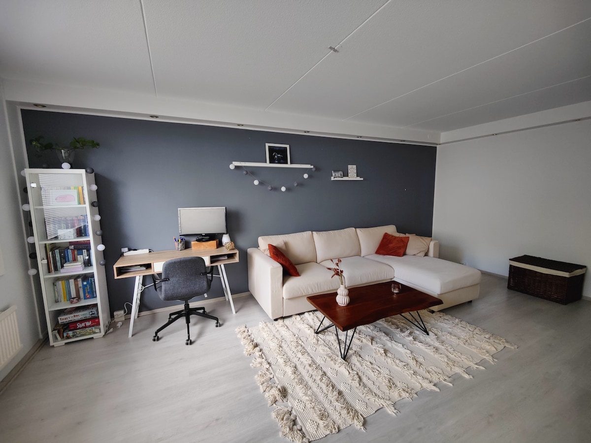 Stiúideo compordach agus príobháideach le bealach isteach féin ón ngairdín álainn go hardán príobháideach grianmhar (le bord agus cathaoireacha) Tá an stiúideo feistithe go hiomlán: Cistin (tábla itheacháin, gréithe dearaidh laethúla na Fionlainne, cuisneoir, oigheann/micreathonnán, sorn, uisce reatha) Seomra suí le troscán úrnua, (deasc, tolg, leaba,teilifís, tábla caife, aerchóiriú) Leithreas príobháideach lena chithfholcadán féin, Chomh maith leis sin, tá seomra ar leith ann duit le húsáid (24/7) le haghaidh níocháin. Tá meaisín níocháin, reoiteoir agus vardrús breise sa seomra.