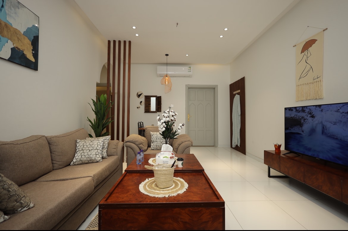 Árasán fairsing ciúin ina bhfuil feistis ghalánta chompordacha ina bhfuil tolglann, dhá sheomra leapa, cistin agus seomra folctha agus an dara hurlár (tarraiceán ), tá na seirbhísí go léir 120 méadar ar shiúl ó cheantar lárnach cheantar Al - Wasit Cuirimid na seirbhísí riachtanacha, uirlisí snámha aon uaire, cócaireacht agus uirlisí seachadta bunúsacha, an tIdirlíon, faire, Netflix, scáileáin chliste, kaweya, níochán chomh maith le níochán ar fáil don áit seo Is féidir rochtain a fháil ar an áit chónaithe trí (féin) seiceáil isteach Seirbhísí breise do do chompord: - Oibrí seirbhíse agus glantóir do do sheirbhís. - Bialanna a thairgeann seachadadh saor in aisce. Guímid fanacht taitneamhach ort linn