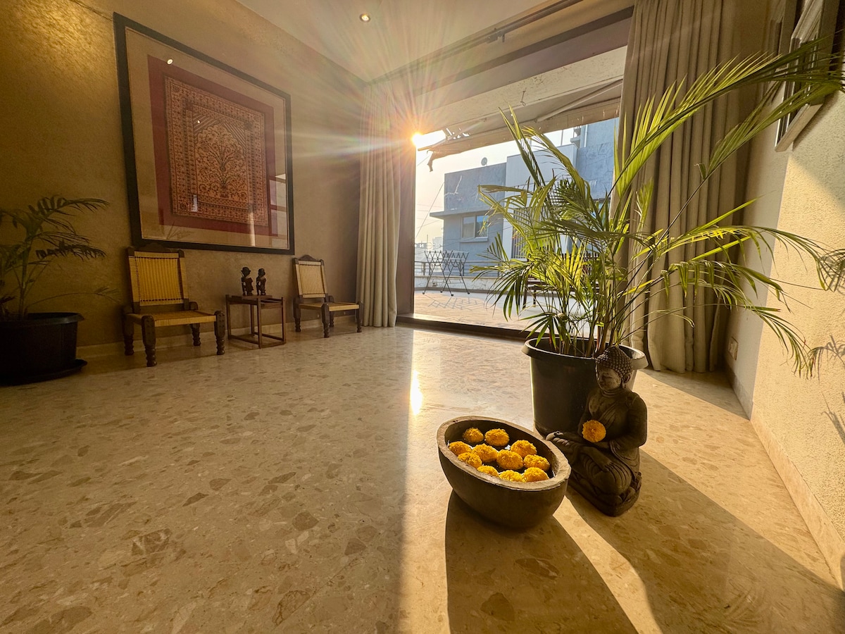 Neadaithe i gcroílár chomharsanacht íocónach Pali Bandra, cuireann ár n - árasán gleoite 2BHK meascán foirfe de chompord, stíl agus suíomh ar fáil. Dúisigh timpeallaithe ag dordán na gcaiféanna, na mbácúis cheardaíochta agus na mbúitíceanna dearthóra is treise i Mumbai. Seas taobh amuigh, agus tá tú tumtha ar an bpointe i bhfuinneamh bríomhar Bandra West, ach tá tú i dtaisce ar lána síochánta a chuireann scéalta shean - Pali Village ar leataobh. Is spás teolaí dea - cheaptha é ár dteach ina mbuaileann chic uirbeach le draíocht seanré.