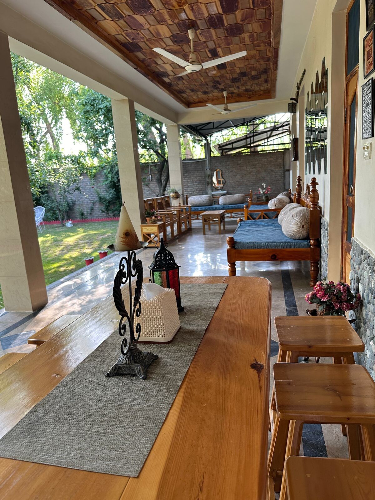Tá Miandam Valley 55 km nó 1 uair an chloig sa charr ó Mingora, príomhchathair réigiúnach an Swat. Seastáin ag 5,900 troigh os cionn leibhéal na farraige agus go leor gan teagmháil ag turasóirí agus tá áilleacht nádúrtha measartha gan teagmháil mar thoradh air. Tá an teach tógtha timpeall ar ailtireacht leath thraidisiúnta ina bhfuil an gairdín agus na seomraí bunaithe ar leibhéil éagsúla. Osclaíonn gach seomra suas go dtí an veranda agus radharc úrnua ar na sléibhte chun cabhrú leat fuarú agus do scíth a ligean. Gan dearmad a dhéanamh ar shiúlóid 5 -10 nóim chuig an sruth fuar oighreata díreach thíos faoi.