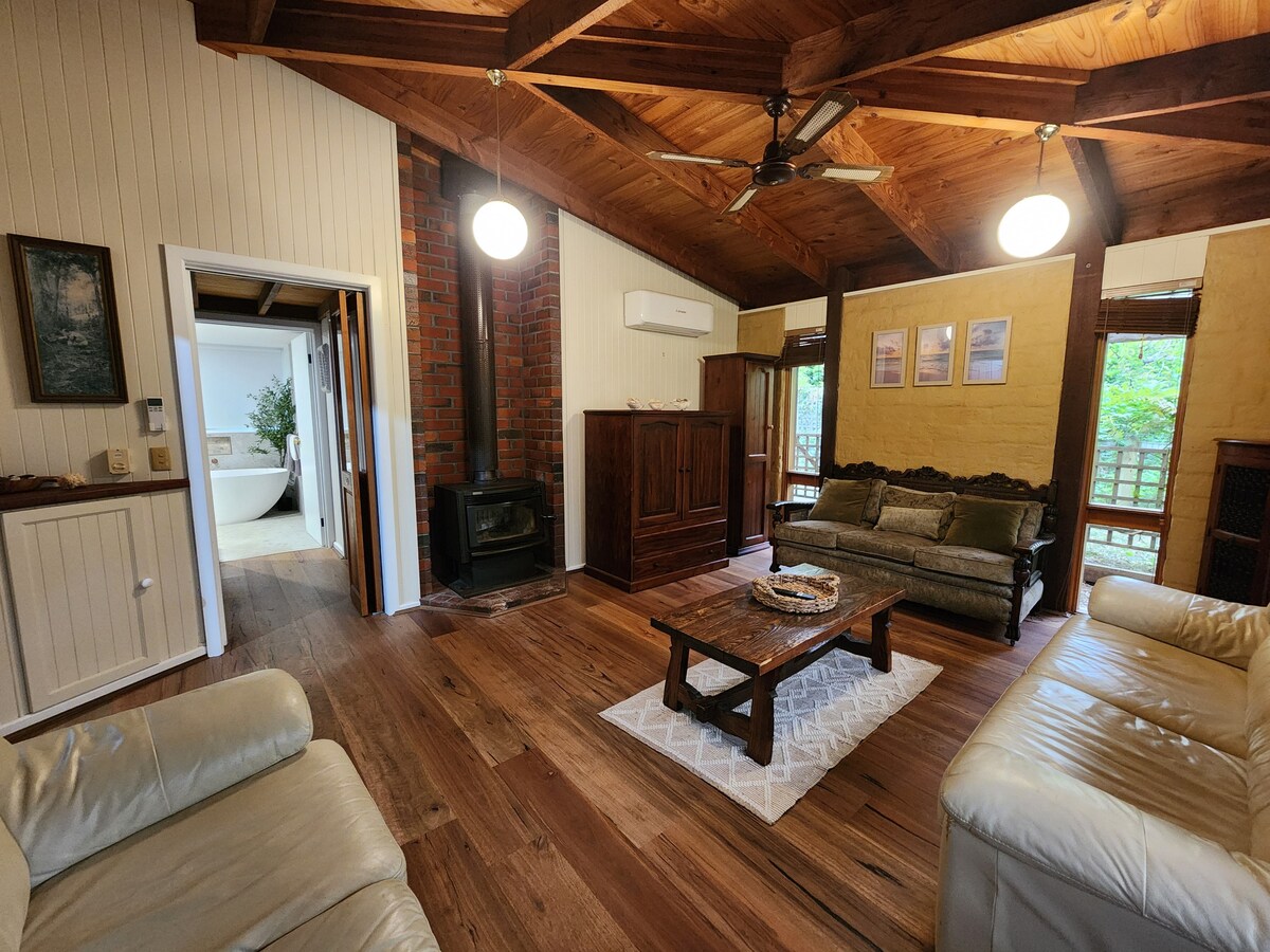 Árasán lánscartha atá suite ag imeall Chúlchiste Shady Gully. Solas agus aerach, le dearcadh coille álainn agus flúirse den saol fiáin. Suíomh an - phríobháideach. Áiseanna cócaireachta taobh istigh chomh maith le beárbaiciú lasmuigh, agus te - phlátaí gáis. Linn snámha plunge téite sa talamh (ar fáil trí na míonna níos teo) le go mbainfidh aíonna taitneamh as. Páirceáil lasmuigh den tsráid ina bhfuil spás do bhád. Wi - Fi ar fáil. Rochtain éasca ar an mbaile TRÍ rian siúil coille in aice láimhe.