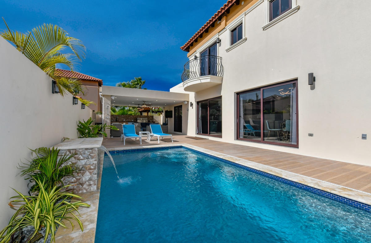 Faigh blaiseadh de Aruba ó chompord an tí nua - aimseartha, compordach seo ina bhfuil siúlóid 5 nóiméad chuig cuid de na tránna is mó ar domhan. Tá an teach i gcomharsanacht an - chiúin ina bhfuil cúlchlós PRÍOBHÁIDEACH. Bain sult as do linn snámha spéirghorm féin, beár - b - te, beár tiki, agus áiteanna suí. Rogha den scoth do theaghlaigh ar mian leo cónaí ar nós mhuintir na háite ar an oileán agus taitneamh a bhaint as bialanna, clubanna oíche, ionaid saoire, malls agus tránna in aice láimhe.