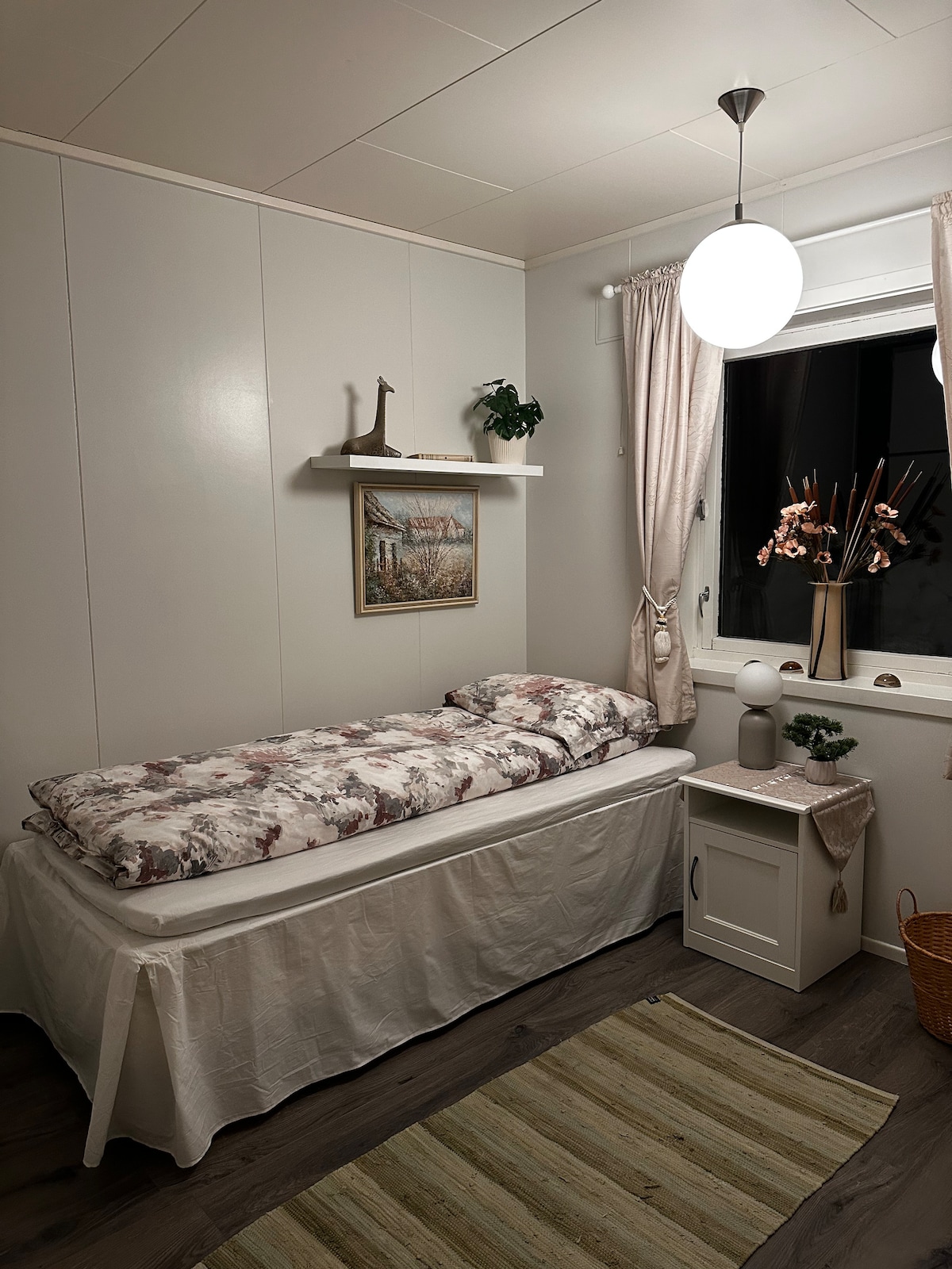 Teachín Dhá Sheomra Leapa. Suíomh le gairdín deas. An dúlra sa chomharsanacht láithreach. 13 chiliméadar ó chathair Senja agus Finnsnes. Tiomáin dhá uair an chloig i gcarr ó Tromsø. NÓTA: Tá na seomraí leapa an - bheag. Beagáinín níos mó ná na leapacha. Tá pumpa uisce sa seomra folctha a dhéanann roinnt torainn nuair a dhraenálann tú uisce. Tá sé ciúin ar shlí eile. Tá 150cm leaba ag 1 seomra leapa agus tá leaba 120cm ag 2 sheomra leapa. Tá lochta beag ann freisin le 1 -2 áit chodlata. (tocht 140cm ) Tá cithfholcadán sa seomra folctha. Wi - Fi