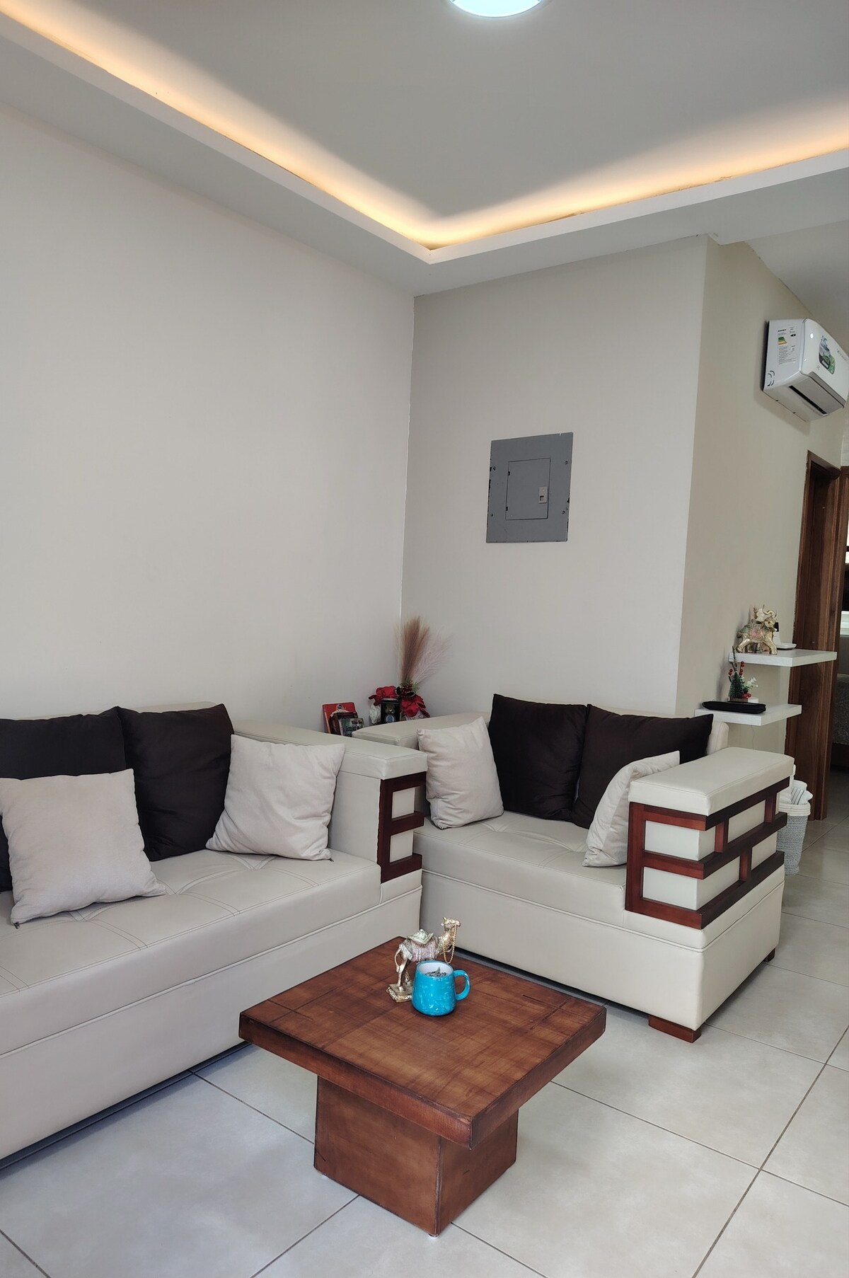 Lig do scíth sa spás ciúin socair galánta seo. Tá ár dteach beag bídeach suite in San Lorenzo, Manta. Tá an teach aíochta seo i réadmhaoin gheataithe ina bhfuil 4 theach eile. Tá Linn Snámha, seacláid théite, spás beárbaiciú, spás maireachtála lasmuigh inár gceantar sóisialta chun bualadh le haíonna eile agus nílimid ach 2 nóiméad ag siúl chuig an trá. Tá go leor saoráidí sa teach a fhágfaidh go mbeidh tú ar do chompord.