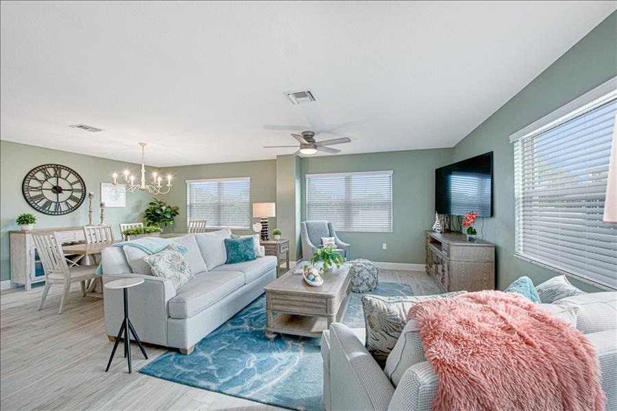 Welcome to your tropical luxury escape! Spacious living flows to the heated pool, game room and sunny patio—perfect for family fun. Bedrooms: 4 private suites, plush linens and blackout shades ensure restful nights. Location: Quiet neighborhood just minutes from the sandy beach, dining and shopping hotspots. Heated pool & sun loungers Arcade-style game room Fast Wi-Fi & 5-star cleanliness Pet friendly with fenced yard Have questions? We reply in under an hour—book your stay today!