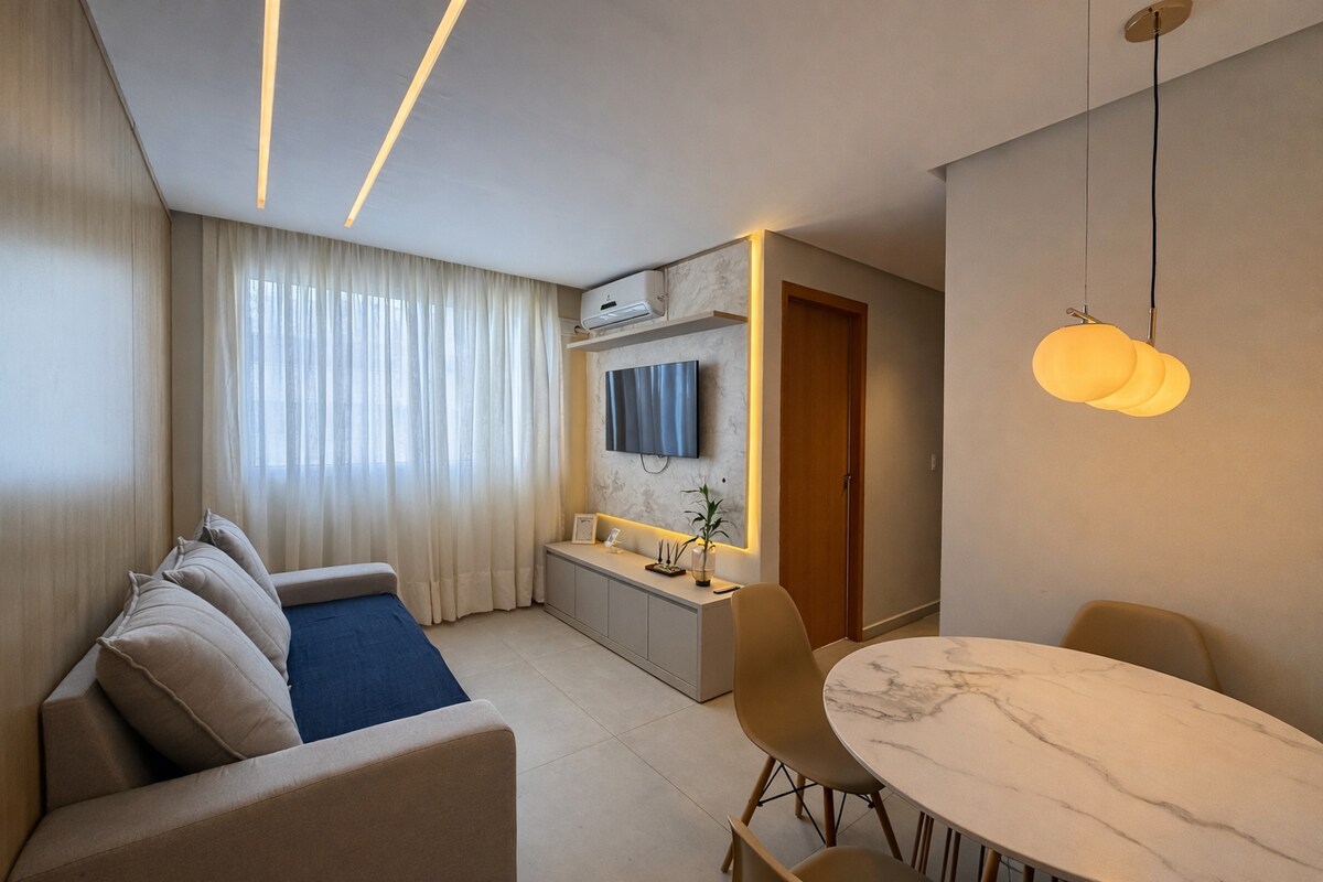 Compord, nua - aoiseacht agus suíomh iontach i Manaus! Árasán 50m² ina bhfuil cistin feistithe (oigheann, déantóir caife, uirlisí), Wi-Fi agus aerchóiriú sa seomra suí agus sna seomraí leapa. Foirfe le haghaidh fóillíochta, oibre nó lánúineacha. In aice le Ponta Negra, Aerfort Eduardo Gomes agus 20 nóiméad ó na príomh - mheallta. Árasán ina bhfuil linn snámha, mionmhargadh, rothair, folúntas, slándáil agus spás gourmet. Déan áirithint anois agus bain sult as Manaus le stíl! Ar an Aoine, bíonn lána saor in aisce sa chomharsanacht ó 5 p.m. go 10 p.m.