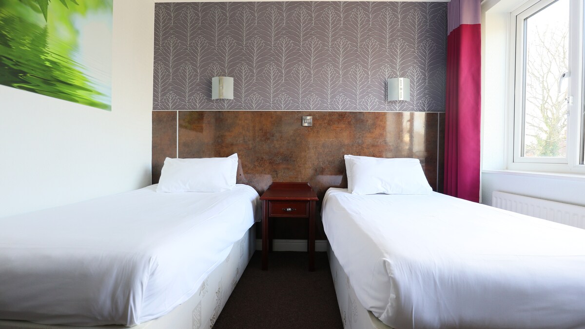 Seomra teolaí ina bhfuil dhá leaba shingil, ina bhfuil deasc oibre, teilifíseán ar a bhfuil scáileán cothrom, agus seomra folctha en - suite ina bhfuil folcadán agus cithfholcadán. Bain sult as Wi - Fi agus saoráidí déanta tae/caife in aisce, mar aon le radhairc ar Chéanna Salford.