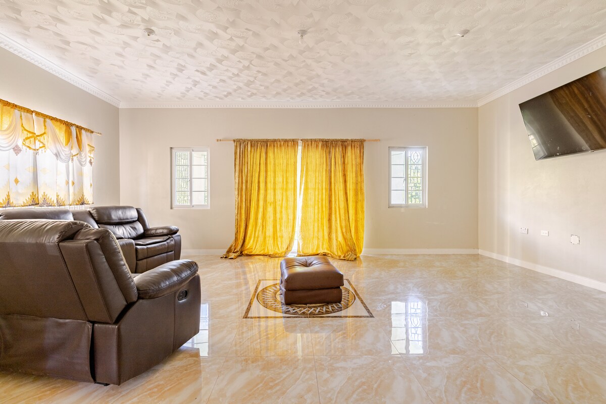 Fáilte go dtí do theach suaimhneach i stíl na hIamáice! Suite i gceantar ciúin de Mandeville fionnuar agus gleoite, tá ár n-árasán dhá sheomra leapa, seomra folctha amháin deartha do theaghlaigh nó do ghrúpaí beaga atá ag lorg compord, suaimhneas, slándáil agus síocháin. Tar isteach chun spás glan, geal, a leagadh amach go cúramach a fháil a oireann do do riachtanas. Tá 2 sheomra leapa, 1 seomra folctha, cistin agus seomra suí ar an taobh istigh. Tá an spás seo deartha go speisialta do ghrúpaí beaga nó níos mó suas le 8 nduine.