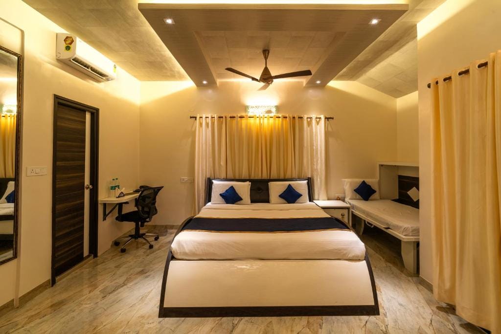 Bíodh compord agus sofaisticiúlacht agat inár Seomra Galánta, atá deartha chun eispéireas fanachta beacht a chur ar fáil le spás breise, maisiúchán galánta agus saoráidí feabhsaithe. Tá an Seomra Deluxe foirfe do lánúineacha, do theaghlaigh agus do thaistealaithe gnó, agus meascann sé áisiúlacht nua-aimseartha le fáilteachas croíúil Mysuru. Lig do scíth tar éis lá fada de thaisteal nó de chruinnithe i dtimpeallacht shuaimhneach dea-fheistithe ina bhfuil compord agus stíl araon.