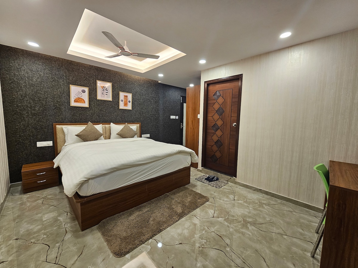 Fáilte go dtí tearmann teolaí Kumar in aice le hAerfort Bangalore in Yelahanka! Tá ár seomraí fairsinge dea - troscáin foirfe do lánúineacha, do theaghlaigh, do thaistealaithe gnó agus do chorparáidí. Bain sult as saoráidí den scoth amhail teilifís, AC, tocht earraigh, geyser, agus tochtanna breise le haghaidh compord breise. Cinntíonn Kumar, d'óstach croíúil fáilteach, fanacht gan stró, bíodh tú anseo don obair nó don fóillíocht. Suite go háisiúil agus deartha go tuisceanach, is é seo do theach iontach as baile. Déan áirithint anois!