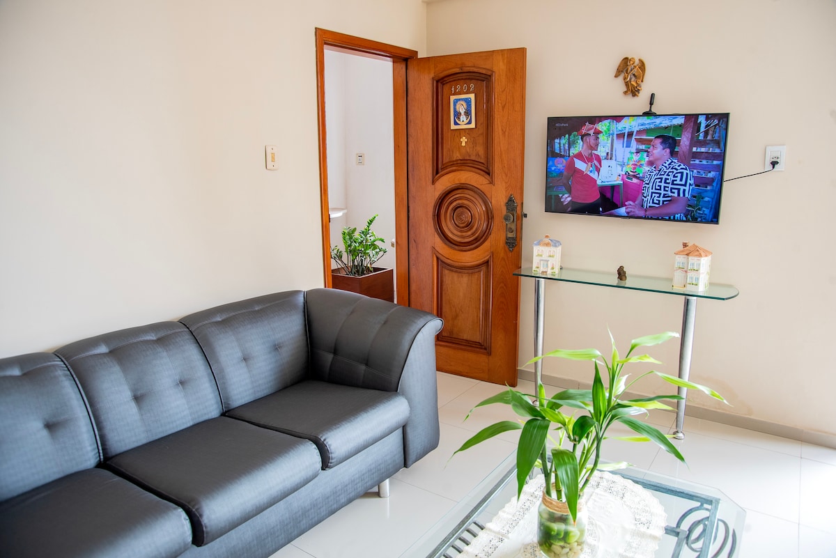 Tearmann Fáilte in Belém? Mar sin, fuair tú an áit cheart! Tá an tseiceáil isteach tapa agus praiticiúil, rud a ligeann duit taitneamh a bhaint as d'am mar is mian leat. Tá an chistin comhtháite sa seomra suí, rud a chruthaíonn spás mór fáilteach chun cócaireacht agus sóisialú a dhéanamh. Seomra Cuisnithe: Tá an seomra cuisnithe, rud a chinntíonn timpeallacht chodlata fhionnuar chompordach. Tá an seomra folctha nua - aimseartha agus tá sé feistithe le gach rud a theastaíonn uait chun a bheith compordach. Radharc álainn ar an gcathair.