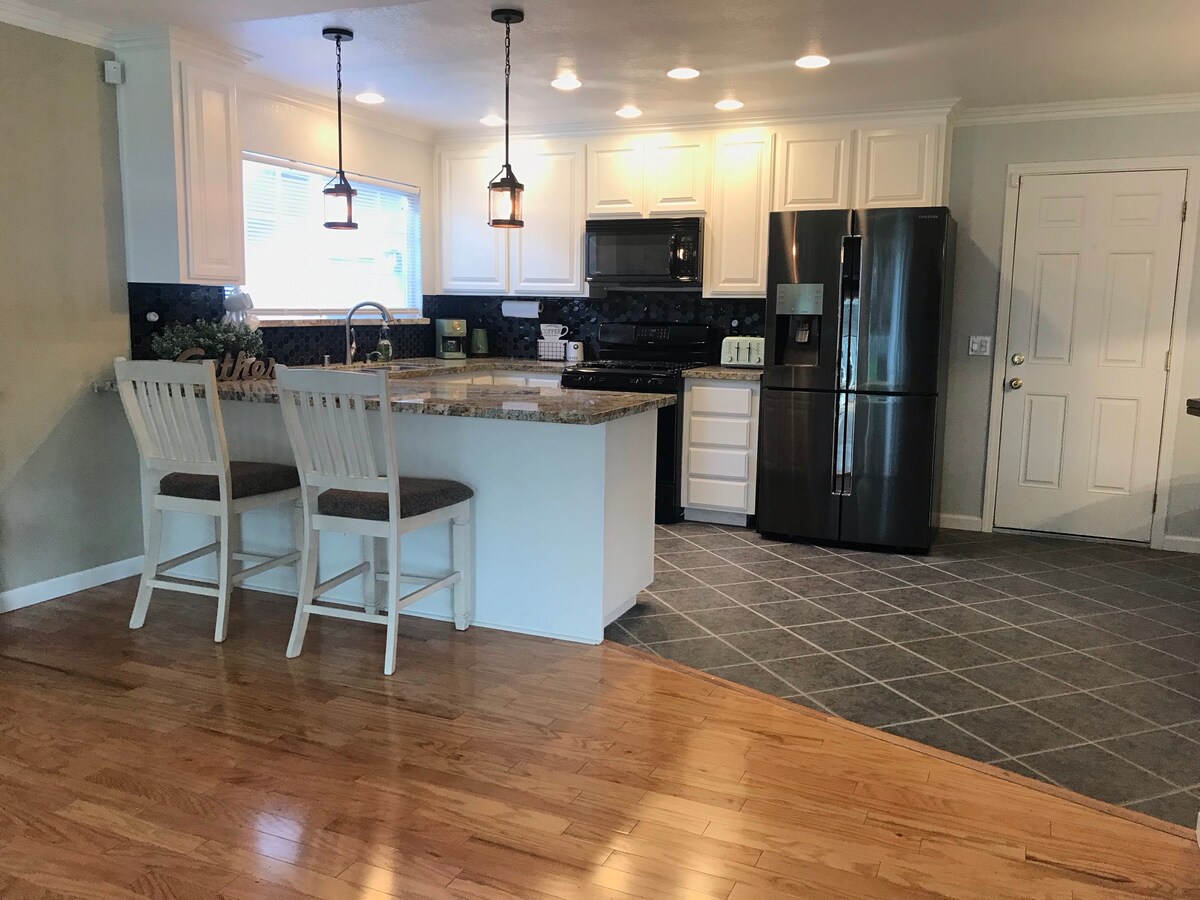 ✨ Neart spáis, cluichí gan deireadh, tobán te suaimhneach, agus gar do na nithe is díol spéise is fearr. Meascán foirfe de chompord, spraoi agus áisiúlacht. Buaicphointí: 🛏️ 4 BR, 3 BA baile foirfe do theaghlaigh & do ghrúpaí (codlaíonn sé suas le 10). Seomra 🎮 Cluiche: Ping pong, foosball, haca aeir, Wii, cluichí boird 🌙 Cúlchlós Oasis: Tobán te, poll dóiteáin, beárbaiciú, cluichí lasmuigh, soilsiú oíche Cistin atá Stocáilte 🍳 go hIomlán: Keurig w/ pods, earraí cócaireachta, spíosraí 🛋️ 2 Sheomra Maireachtála & 5 Theilifíseán Chliste 🧺 Meaisín níocháin/Triomadóir & Wi - Fi Gasta 🚗 Páirceáil: Cabhsa mór