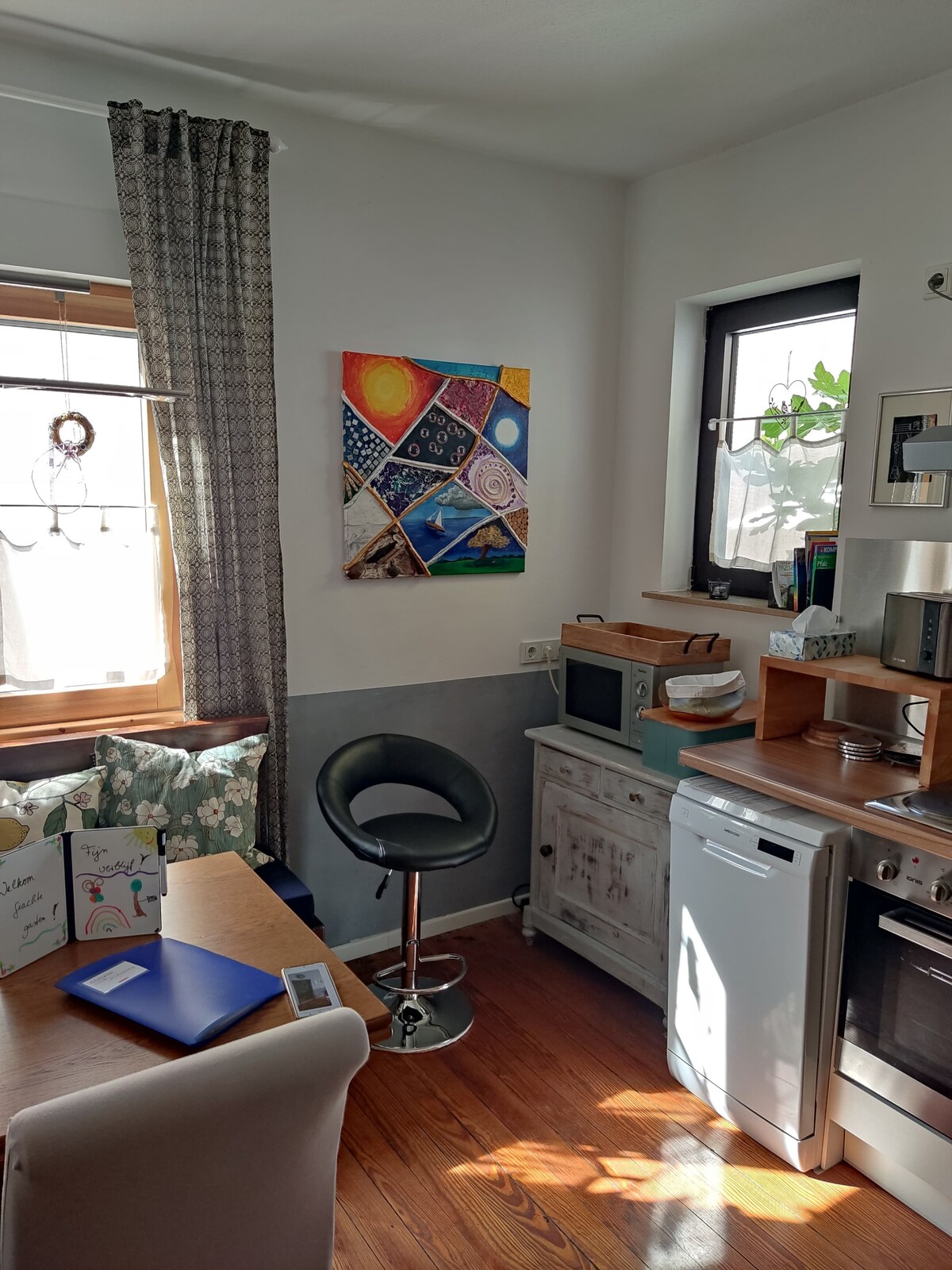 Árasán teolaí lena ghairdín féin ar imeall na páirce agus radhairc iontacha ar fhíonghoirt. Tabhair faoi deara nach bhfreastalaímid ach ar 2 dhuine fásta + páiste ar a mhéad. Tá draíocht an - speisialta ag baint le sráidbhaile álainn fíona Bissersheim & i díreach 4 km ag máirseáil trí na fíonghoirt iontacha a chuireann fáilte romhat, an sráidbhaile fíona álainn stairiúil sin in Freinsheim. Lonnaithe go hidéalach le haghaidh turas chuig bealach an fhíona nó chuig Foraois Palatinate.