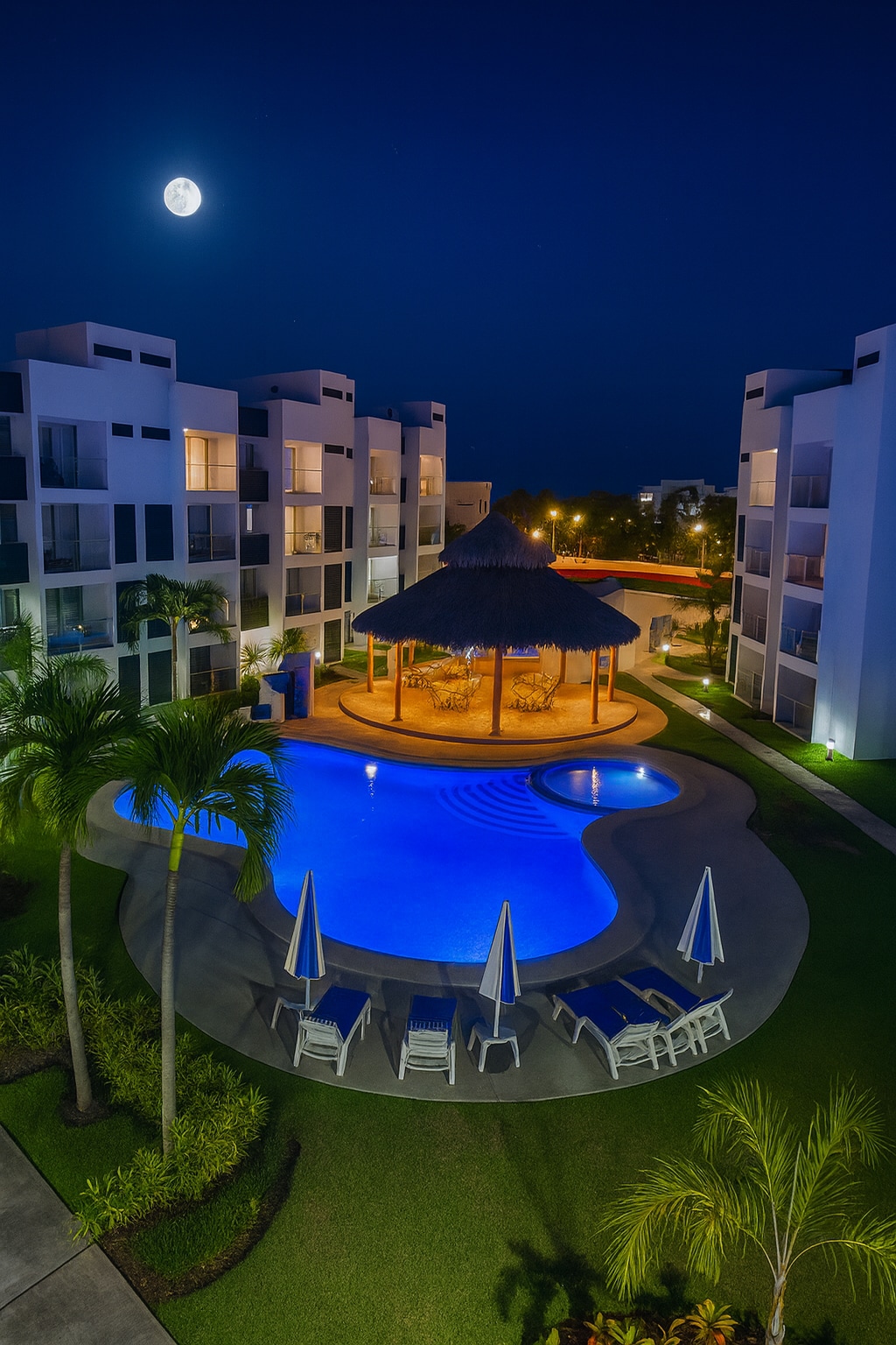 Árasán teolaí 1 seomra leapa +den le radharc iontach ar an Aigéan Ciúin agus ar Playa La Audencia. Siúlóid 5 nóiméad go dtí an trá. Is féidir leat taitneamh a bhaint linn snámha príobháideach. Tá WIFI agus 2 theilifís chliste ar fáil. 2 leaba chúpla, 1 leaba cuachóige ar fáil. 1 leaba dhúbailte. Cithfholcadán siúil, 2 aonad AC. Achar siúil go dtí Óstán Tesoro agus 2 bhialann bheaga agus Kiosko. Tiomáint 5 nóiméad chuig Las Hadas Hotel, Walmart agus Soriana. Tá tacsaí agus bus #8 ar fáil sa gheata tosaigh.